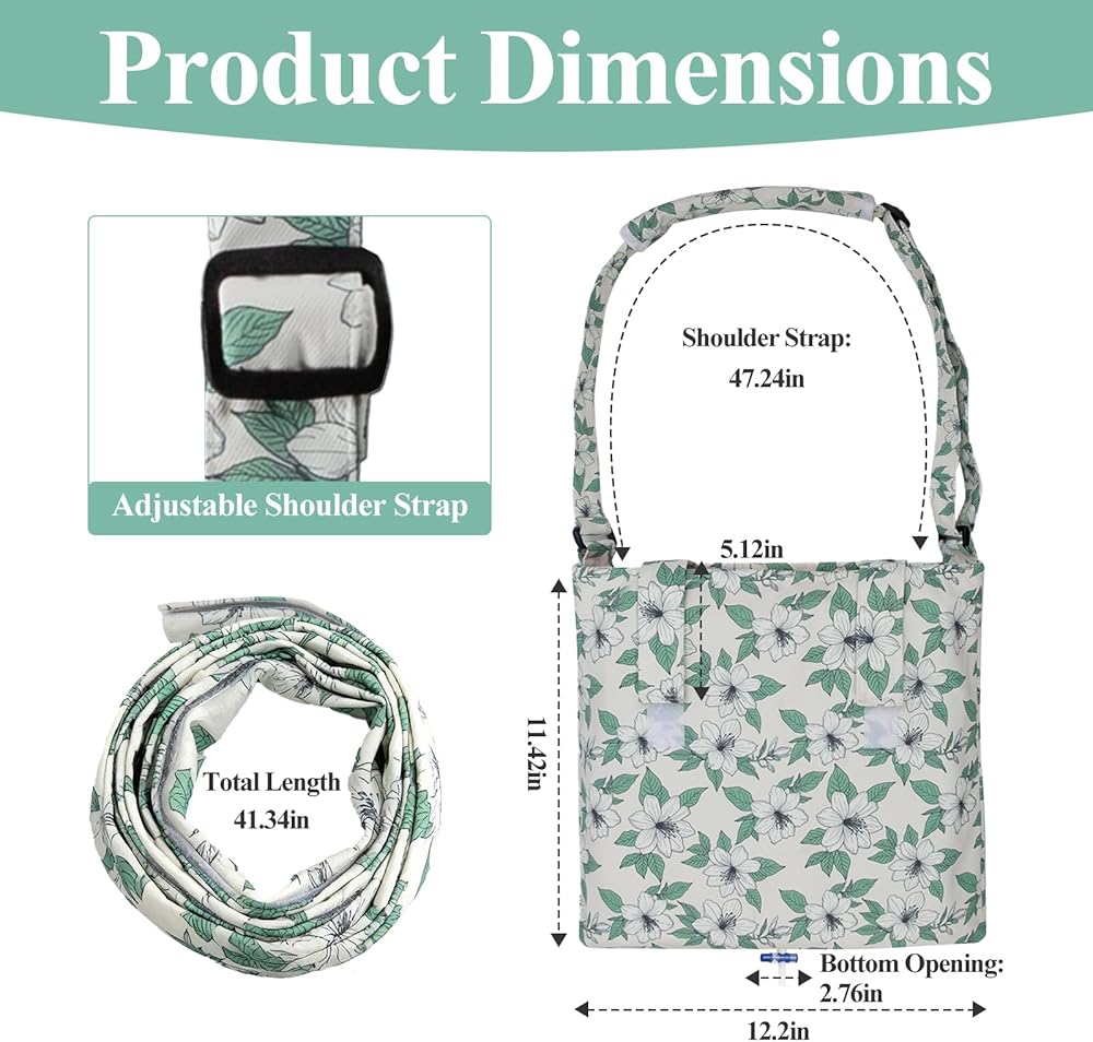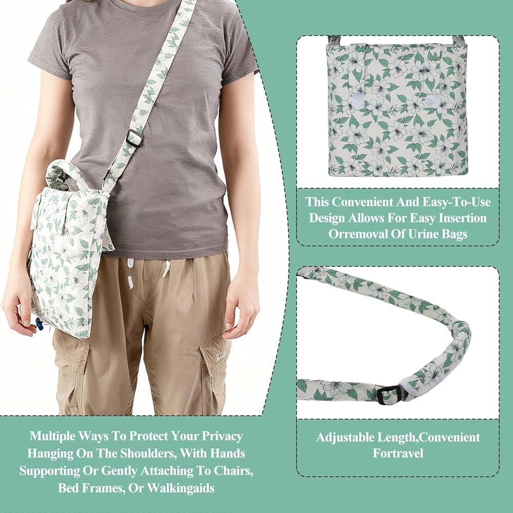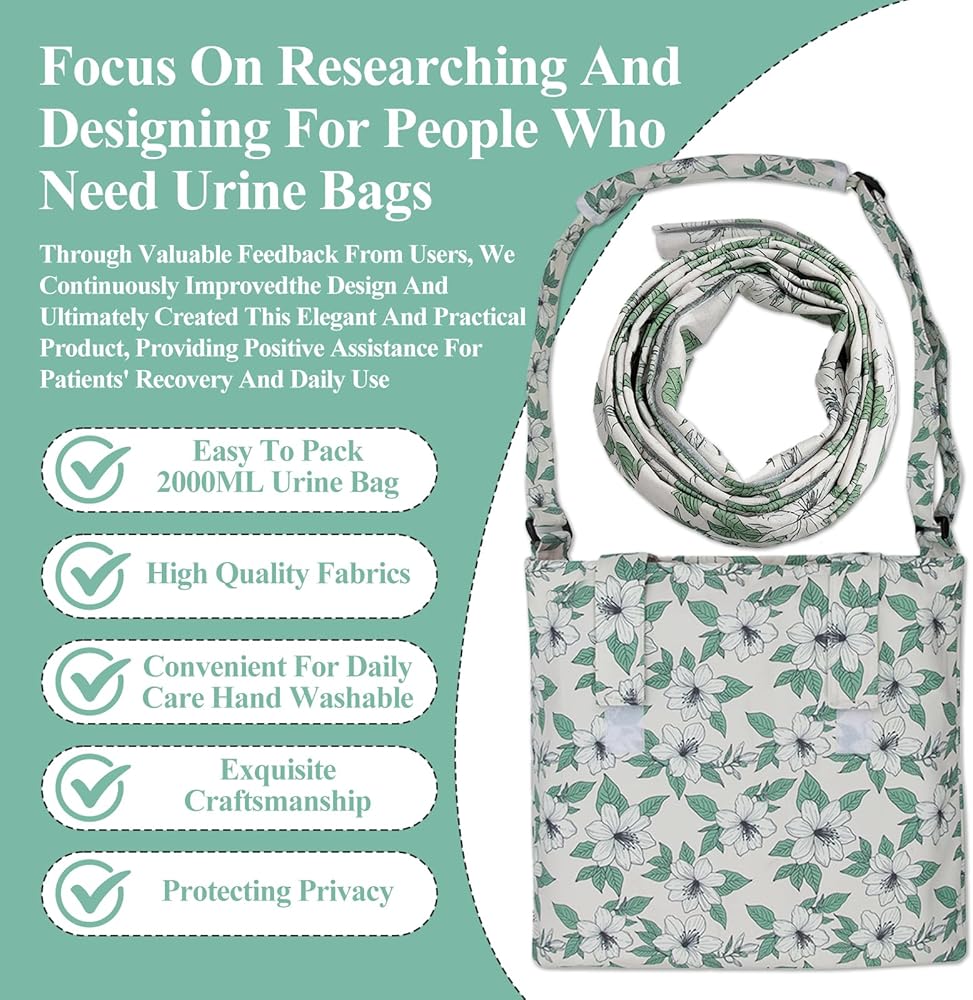 Urine Drainage Bag Holder,Catheter Bag Holder with Shoulder Strap & Zippered Bottom , Catheter Bag Cover & Adjustable Strap , Jasmine Prints , Conceals Foley Urine Drainage Bags up to 2000ml
