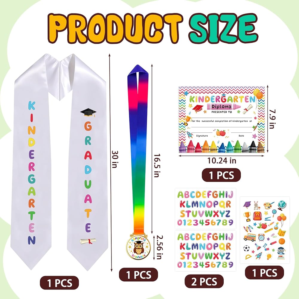 هدية التخرج المثالية لرياض الأطفال: يتضمن صندوق الهدايا هذا وشاح تخرج لرياض الأطفال، وشهادة تخرج، وميدالية تخرج بومة، وثلاث أوراق مطبوعة بأحرف وأرقام وتصميمات لطيفة. إنه اختيار ممتاز سواء كان هدية تخرج لا تُنسى من رياض الأطفال أو هدية للحفلات للاحتفال بإنجازات أطفالك