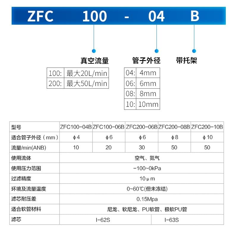 ZFC100-06B هوائي الضغط السلبي خط أنابيب الهواء فراغ تصفية 200-08B خرطوشة ZFC54-B الصغيرة 1 قطعة (VFU1-44P-15P 接管4mm)
