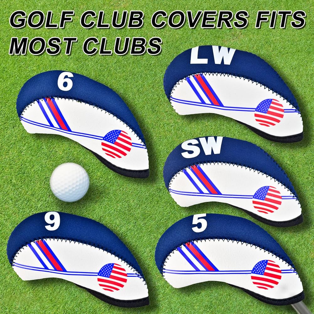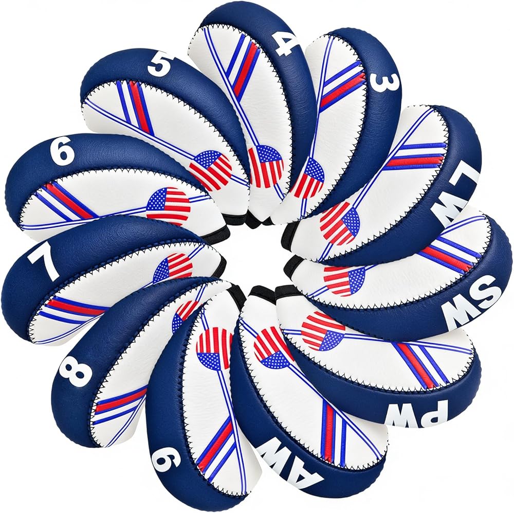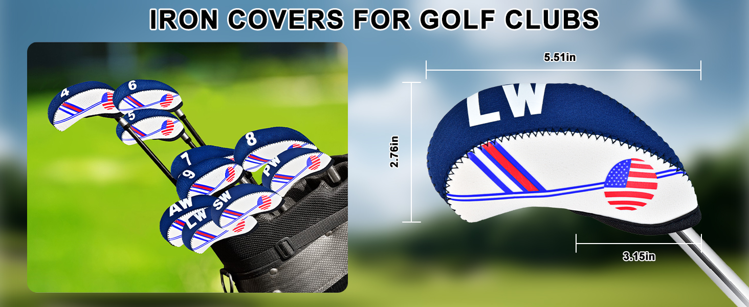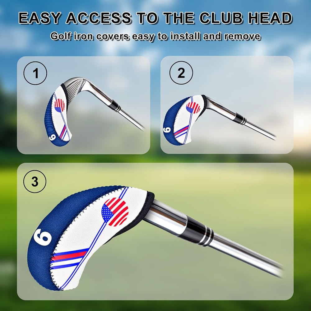تصميم فريد: تم تصميم غطاء نادي الجولف بنمط العلم الأمريكي، وتصميم أنيق مطرز من جانب واحد، مثالي لنوادي الجولف التي تسعى إلى الموضة والعملية. أغطية حديدية لنوادي الجولف مصممة للاعبي الجولف، وهي مريحة وآمنة عند ارتدائها.