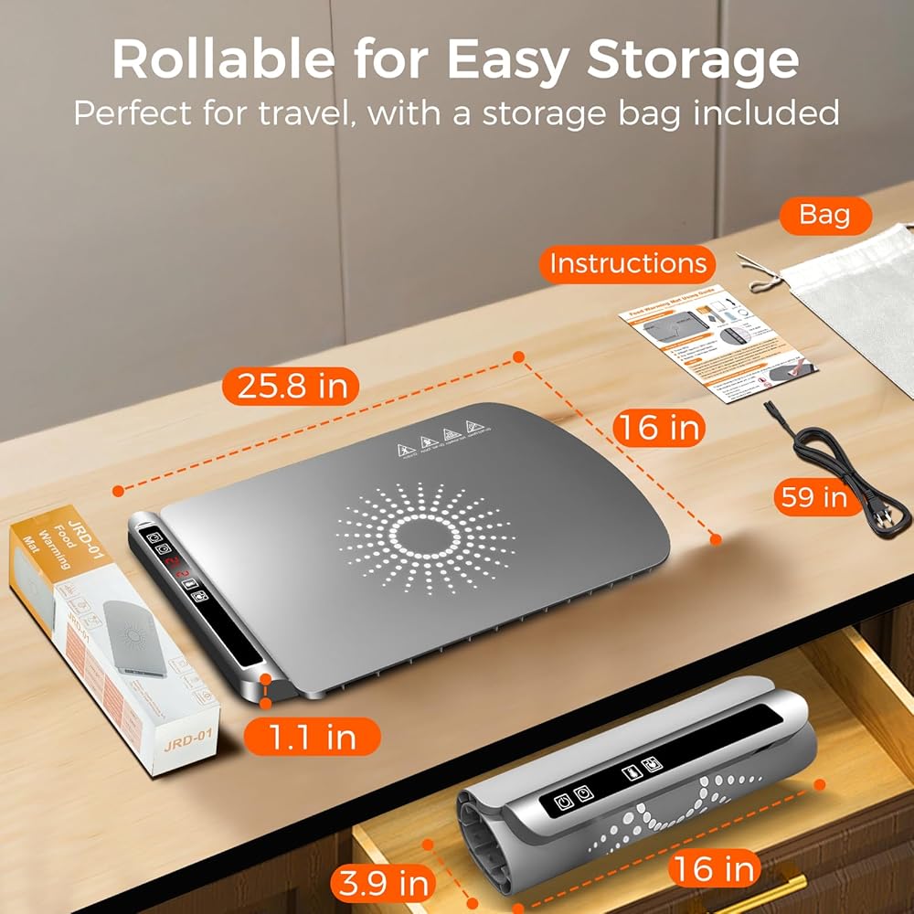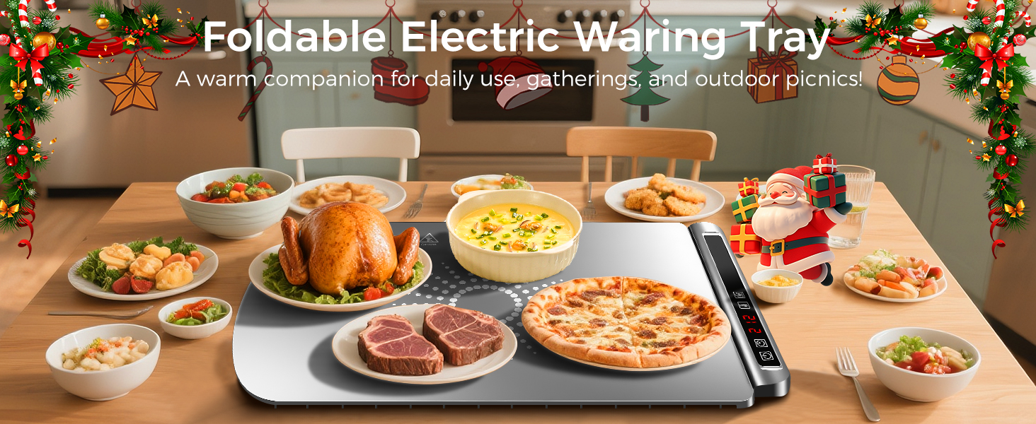 بساط تدفئة للطعام، صينية تدفئة كهربائية مع 5 مستويات لدرجة الحرارة ومؤقت قابل للتعديل، بساط تدفئة الطعام يسخن بسرعة، جهاز تدفئة الطعام قابل للطي لبوفيه الحفلات، هدايا تدفئة المنزل
