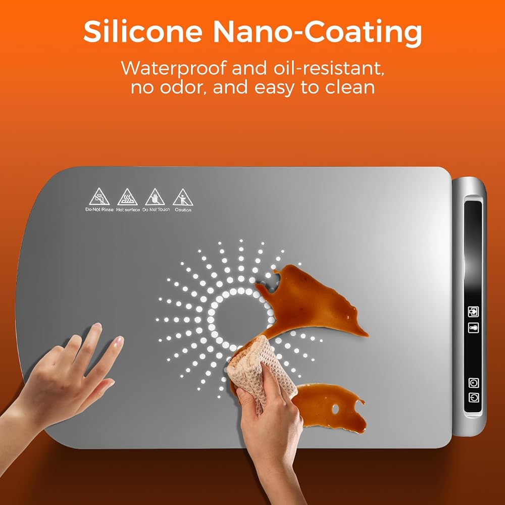 • 【سيليكون صالح للطعام وسهل التنظيف】مصنوع من سيليكون عالي الجودة صالح للطعام، بساط التدفئة هذا آمن ومتين ومقاوم للحرارة للغاية - مما يضمن الاستخدام طويل الأمد. يتيح لك سطحها المطلي بالنانو مسح البقع بسهولة، مما يوفر وقت التنظيف. بالإضافة إلى ذلك، فهو مزود بقفل للأطفال ومناطق مقاومة للحرارة على الحواف لمنع الحروق العرضية. تعمل سجادة تسخين الطعام هذه على توازن السلامة والمتانة، وهي هدية مثالية للتدفئة بالمنزل الجديد