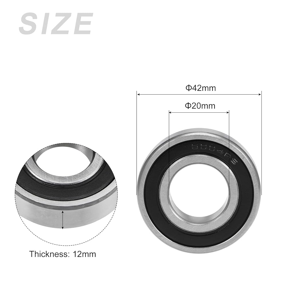 [2]: المواصفات - الأبعاد الإجمالية: 20 مم × 42 مم × 12 مم (القطر الداخلي * القطر الخارجي * السُمك)؛ الموديل: 6004-2RS; نوع مختوم: مزدوج مختوم
