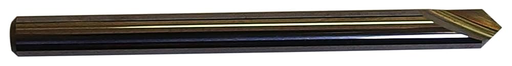 Cobra Carbide single flute countersink eliminates chattering or tearing. Use in mild steel; not suitable for hardened steel. Chatterless countersinks have flutes designed for fast shearing cuts ideal for hardened steel and other tough alloys. For chamfering, countersinking, and deburring holes. Solid carbide tools offer long tool life and faster cutting speeds than other substrates, but are more brittle and must be used with rigid toolholding systems. Round shanks allow use with a wide variety of toolholding systems. 82 degrees point angle.