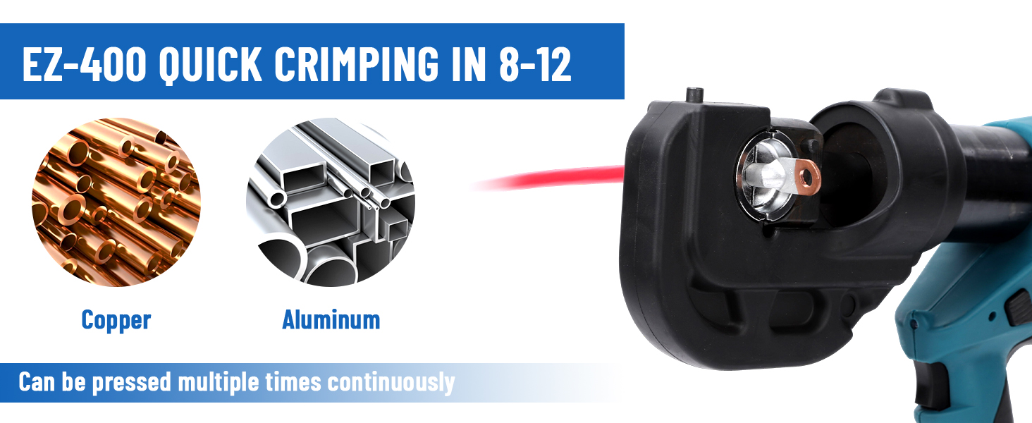 [أداة تجعيد هيدروليكية عالية الكفاءة] تحقق تجعيدًا على كابل نحاسي 400 مم مربع أو كابل ألومنيوم 300 مم مربع في 8-12 ثانية، مما يقلل من وقت العمل. توفر أداة العقص الهيدروليكية هذه 12 طنًا من قوة الإخراج (70 ميجا باسكال) بضربة 1.65 بوصة (42 مم)، قادرة على إجراء أكثر من 30000 تجعيد - مما يجعلها أداة متينة لتجعيد كابلات البطارية للاستخدام الصناعي.