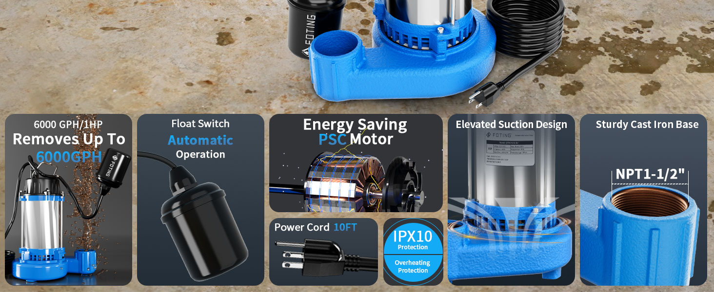 【تصميم شديد التحمل ومقاوم للانسداد】مصنوع من حديد الزهر القوي وغطاء من الفولاذ المقاوم للصدأ، وتصميم معزز مضاد للانسداد بالإضافة إلى تصميم شفط عالي، وتفريغ NPT1-1/2 بوصة. إنه مثالي للتركيبات الموجودة في الطابق السفلي أو أقل من الدرجة