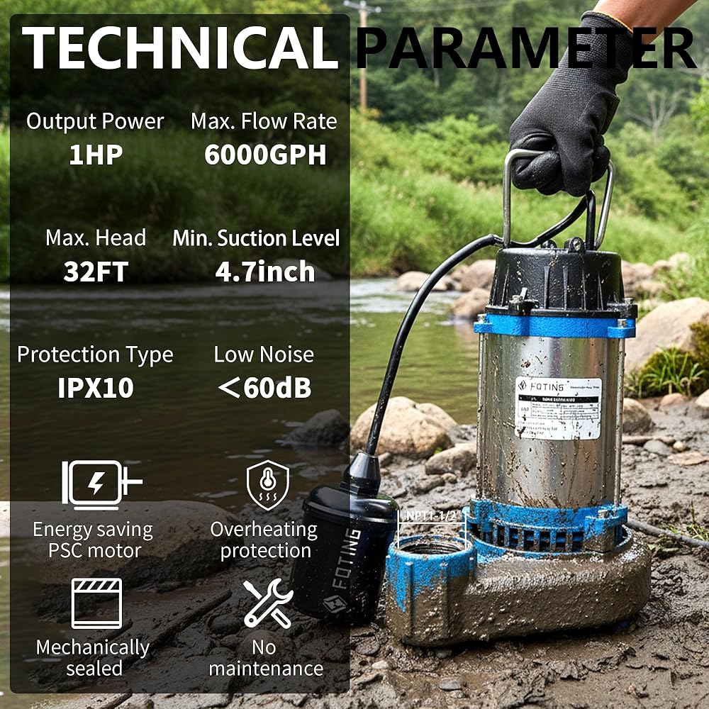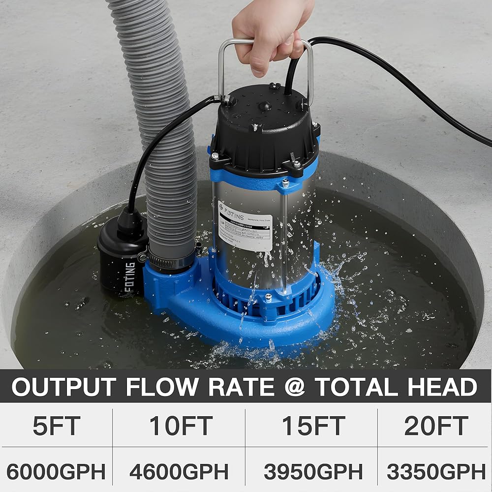 【مضخة مياه الصرف الصحي عالية الكفاءة 6000 جيجا في الساعة】مجهزة بمحرك PSC بقوة 1 حصان، وتضمن مضخة طاحونة الصرف الصحي أداءً قويًا. يمكن لمضخة الصرف الصحي ضخ ما يصل إلى 6000 جالون في الساعة وسوف ترفع المياه حتى 32 قدمًا من الارتفاع الرأسي. توفير الطاقة والتشغيل الهادئ يجعلها مثالية للأقبية وأحواض الحوض وتطبيقات خزانات الصرف الصحي