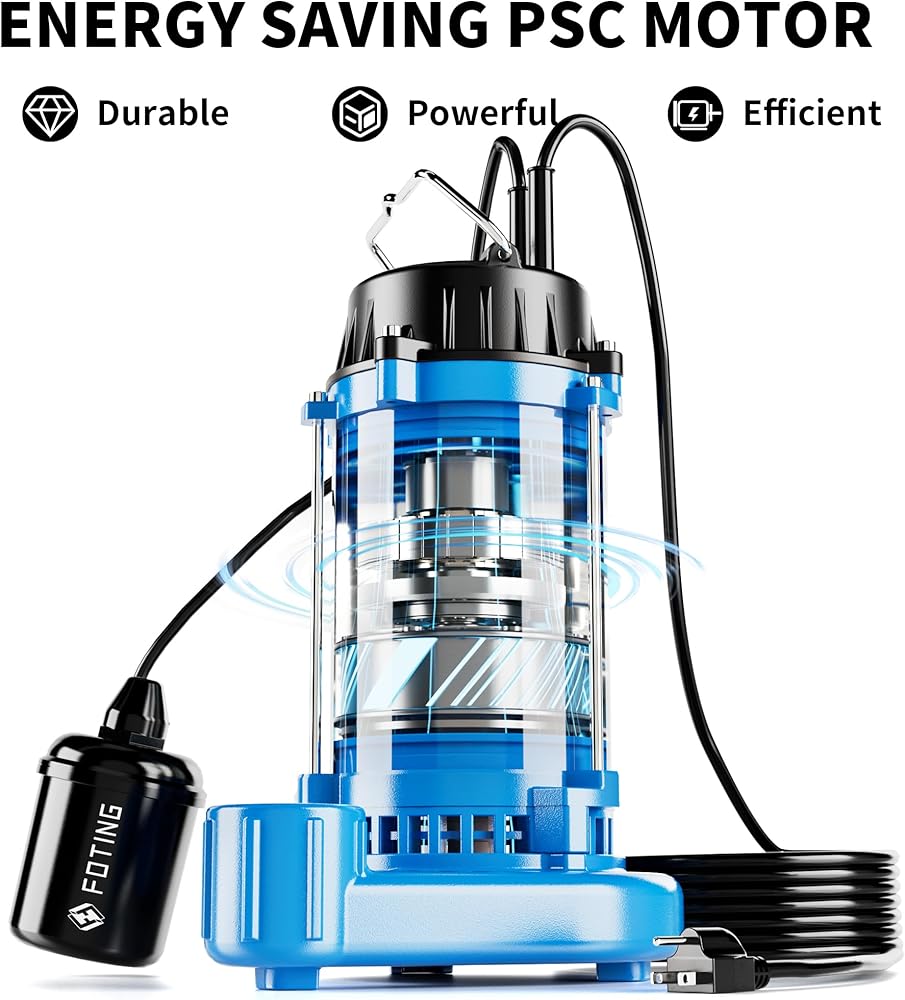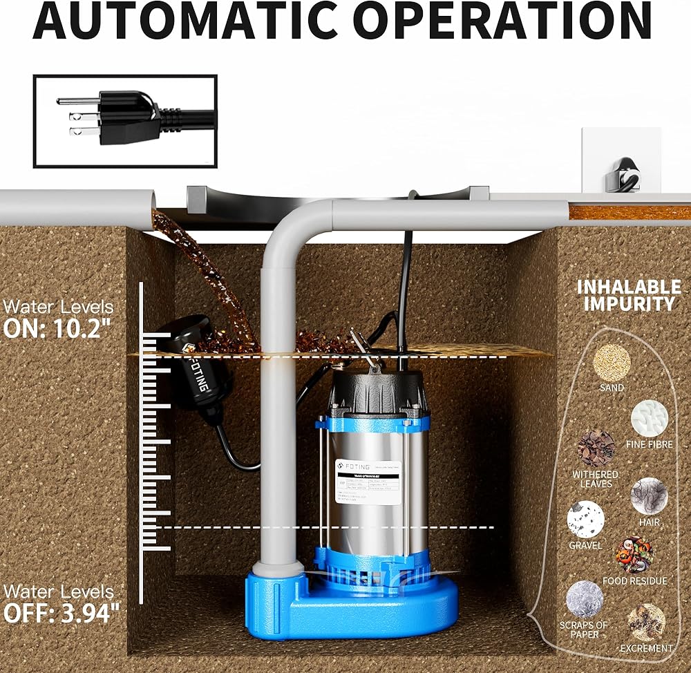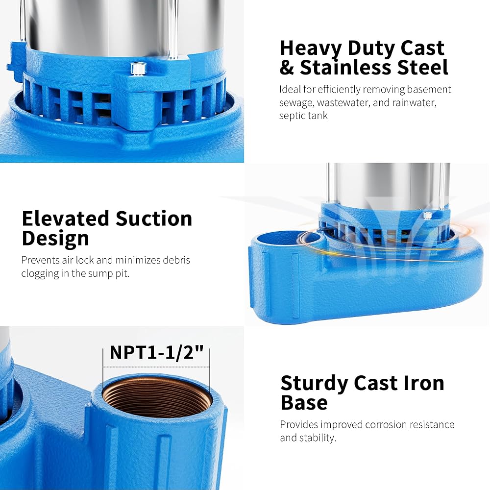 【حماية من الحرارة الزائدة من أجل السلامة】حماية مدمجة من الحمل الزائد الحراري توقف احتراق المحرك أثناء التشغيل الجاف أو ارتفاع الجهد الكهربي، وتتميز بختم ميكانيكي لتعزيز المتانة. مضخة الصرف الصحي المصنوعة من الحديد الزهر مع صمام تنفيس الهواء المدمج تمنع قفل الهواء وتضمن تدفق المياه بسلاسة. نصيحة: قم بغمر المضخة بالكامل وعزلها في درجات حرارة متجمدة للحصول على أعلى أداء