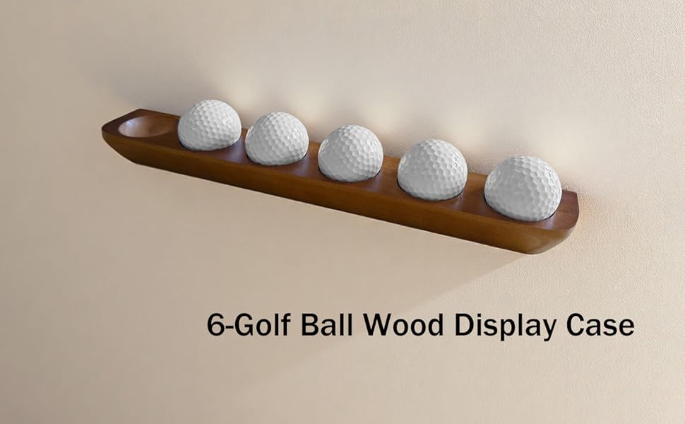 علبة عرض كرة جولف خشبية مكونة من قطعة واحدة، حامل كرة جولف على رف عائم لعرض 6 كرات - حامل على الحائط/حامل سطح الطاولة، ديكور مكتب وهدية تذكارية لهواة جمع الجولف
