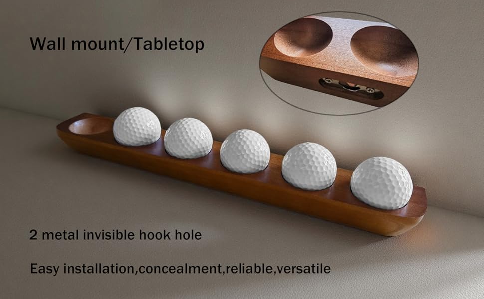 تصميم مزدوج الاستخدام: يمكن تركيب حافظة كرة الجولف هذه على الحائط أو سطح الطاولة، مع فتحتين معدنيتين غير مرئيتين للتركيب. مخفية وموثوقة ومتعددة الاستخدامات