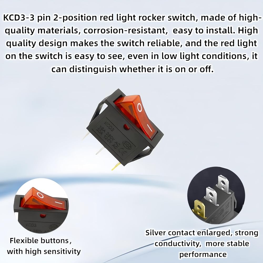 • Wide compatibility range: KCD3-3 pin 2-position red rocker switch is suitable for electric fireplaces, neon lights, desktop grinders, and is the perfect choice for household appliances. If you are looking for high-quality and durable switches, please choose this 3-pin 2-position red rocker switch.