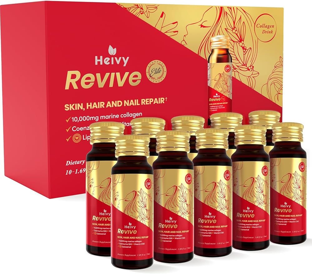 كولاجين سائل هيفي مارين للنساء 10000 مجم، امتصاص أعلى بنسبة 133%، فيتامينات البيوتين CoQ10، ممارسات التصنيع الجيدة الأمريكية، تم اختباره من قبل طرف ثالث، خالي من الغلوتين غير المعدل وراثيًا، 50 مل 10 زجاجات