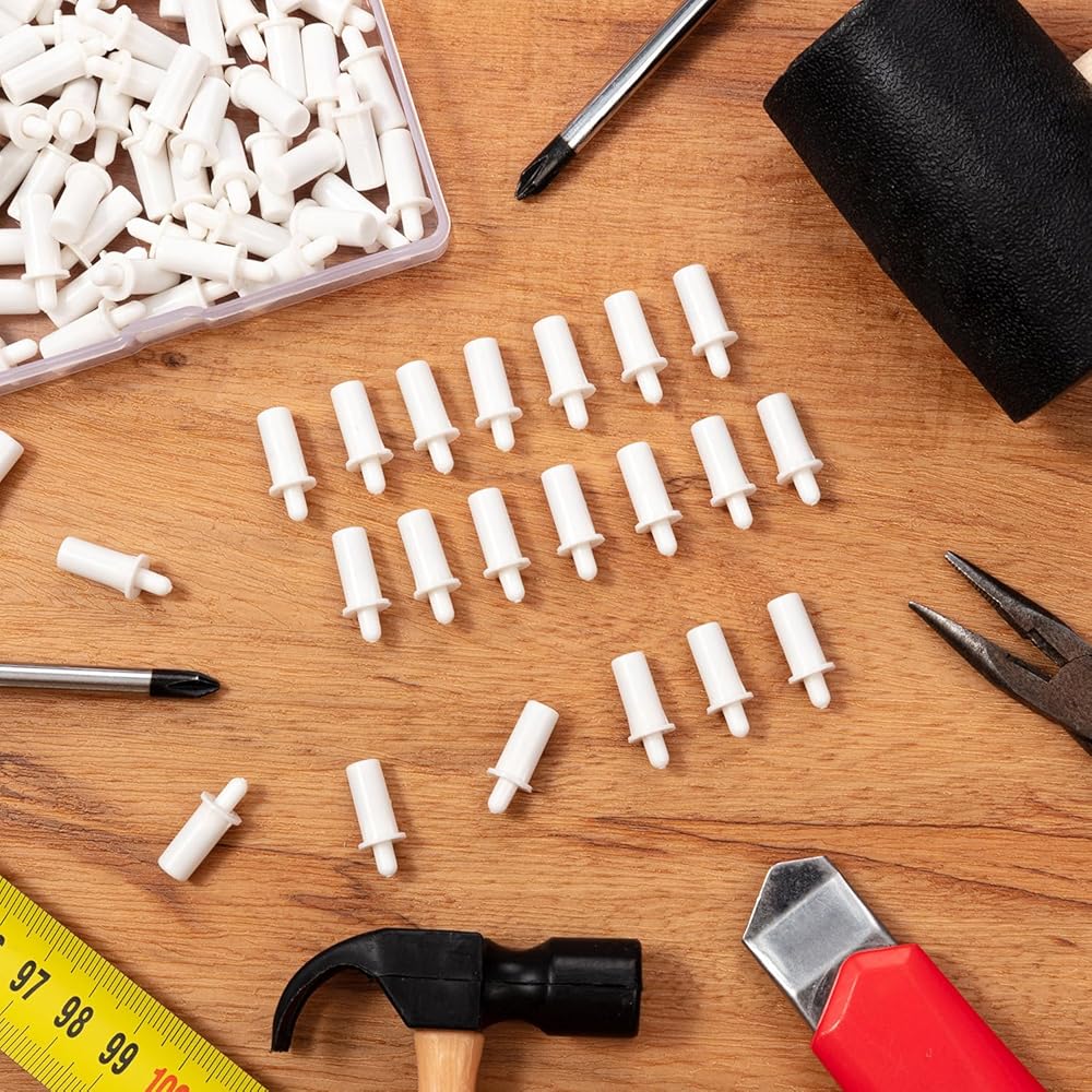 دبابيس مزدوجة الأغراض: دبابيس إصلاح باب الخزانة مفيدة ليس فقط لإصلاح مصاريع المزرعة، ولكن أيضًا كأوتاد دعم لوحدة الرف. تستخدمها الخزانات والأرفف لدينا للحصول على استخدام مرن للمساحة وسهولة الإصلاح