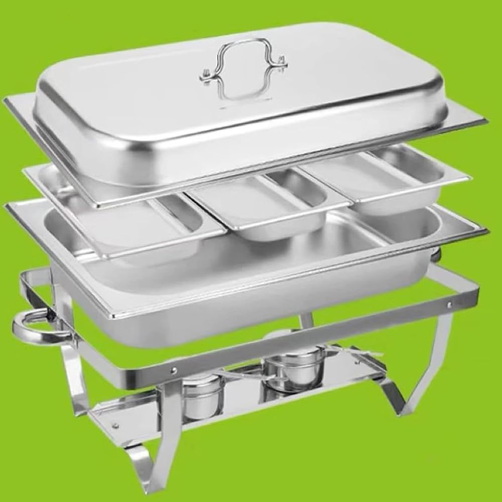 Food heater for parties - set with water pan,food pan,lid and a fuel burner. With the support of the fuel holder,our plates can heat up food. Alternatively,you can add enough ice to the water pan to cool the food. There is even a visible lid option with a clear glass design for easy viewing.
