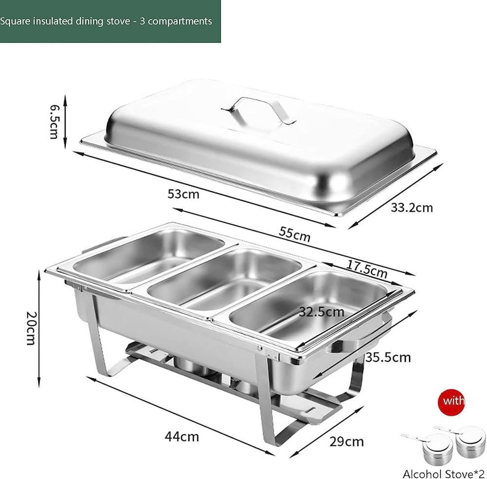 طبق ساخن للبوفيه من الفولاذ المقاوم للصدأ - يحتوي على صينية تسخين من الفولاذ المقاوم للصدأ، مجموعة بوفيه وعاء ساخن، سخان طعام مع غطاء من الفولاذ الصلب وحامل لتقديم الطعام في حفلات الزفاف (ثلاثي/ج)
