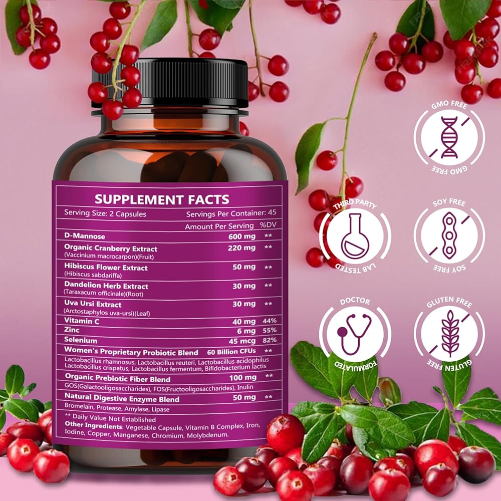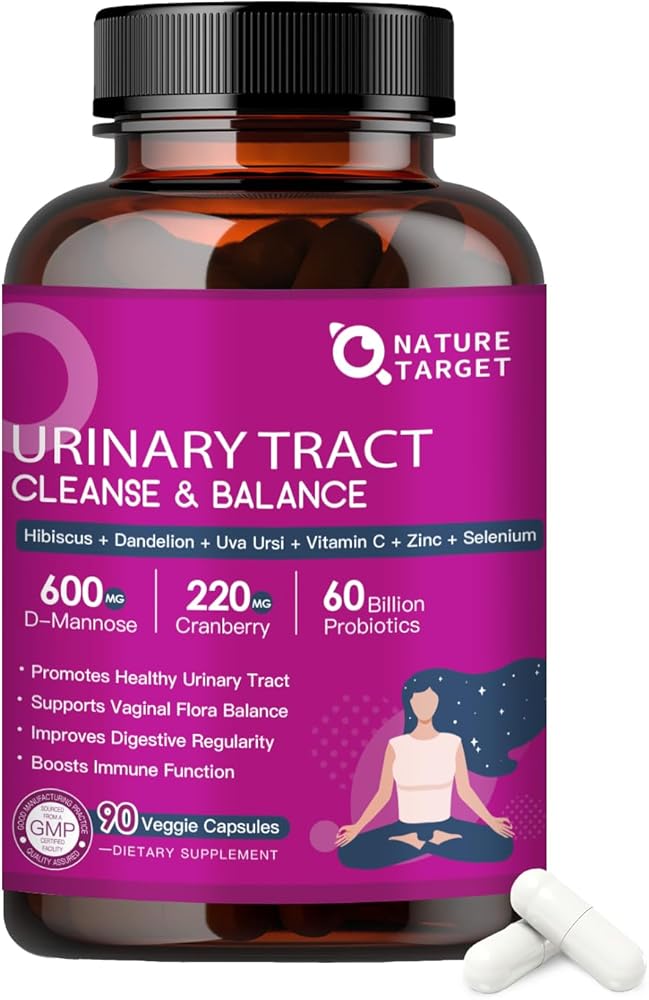 NATURE TARGET البروبيوتيك للنساء لصحة المسالك البولية مع D مانوز والتوت البري - 60 مليار CFUs البروبيوتيك المهبلي لصحة الجهاز الهضمي، التهاب المسالك البولية وتوازن درجة الحموضة مع البريبايوتكس - 90 كبسولة