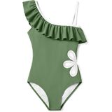 تتميز ملابس السباحة الأنيقة هذه للفتيات المكونة من قطعة واحدة بتصميم أنيق بكتف واحد مزين بكشكشة ذات طبقات، مما يخلق مظهرًا مرحًا وأنيقًا. إنه يسلط الضوء بشكل مثالي على روح طفلك المفعمة بالحيوية وهو جذاب بشكل لا يصدق، مما يجعله بدلة استحمام مميزة للفتيات لالتقاط ذكريات الصيف