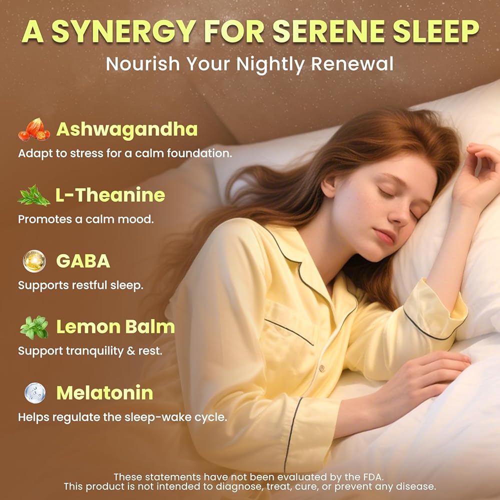 استيقظ بشعور متجدد - تحتوي هذه التركيبة على إل-ثيانين وحمض غاما أمينوبوتيريك (GABA)، الذي يعمل جنبًا إلى جنب مع مستخلصات أشواغاندا وبلسم الليمون. دعم حالة الهدوء والاسترخاء، حتى تتمكن من الاستيقاظ وأنت تشعر بالانتعاش.