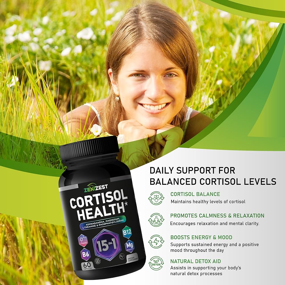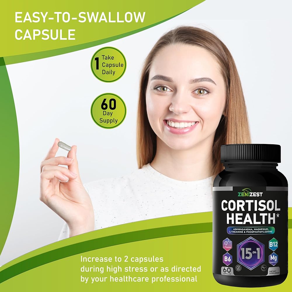 • Complete Cortisol Support: Support a sense of calm and clarity with ZeniZest Cortisol Detox Supplement for Women and Men. This natural cortisol reducer and adrenal support complex supplement features Magnesium Glycinate, Ashwagandha, L-Theanine, Phosphatidylserine—combined with vital nutrients and adaptogens to help the body reduce high cortisol, support stress management and contribute to overall health, balance and wellness.
