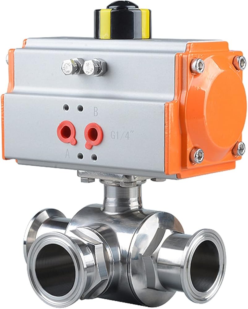 63mm 3 طريقة 304 الفولاذ المقاوم للصدأ ثلاثي المشبك الطويق نوع صمام الكرة الهوائية مع اسطوانة مزدوجة التمثيل