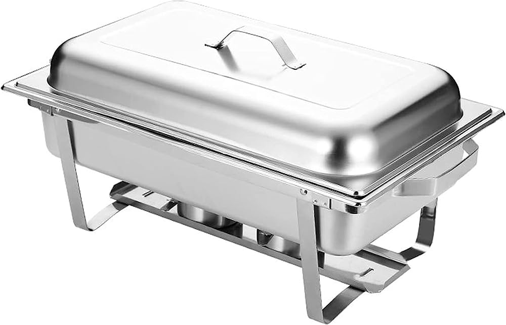 Food heater for parties - set with water pan,food pan,lid and a fuel burner. With the support of the fuel holder,our plates can heat up food. Alternatively,you can add enough ice to the water pan to cool the food. There is even a visible lid option with a clear glass design for easy viewing.