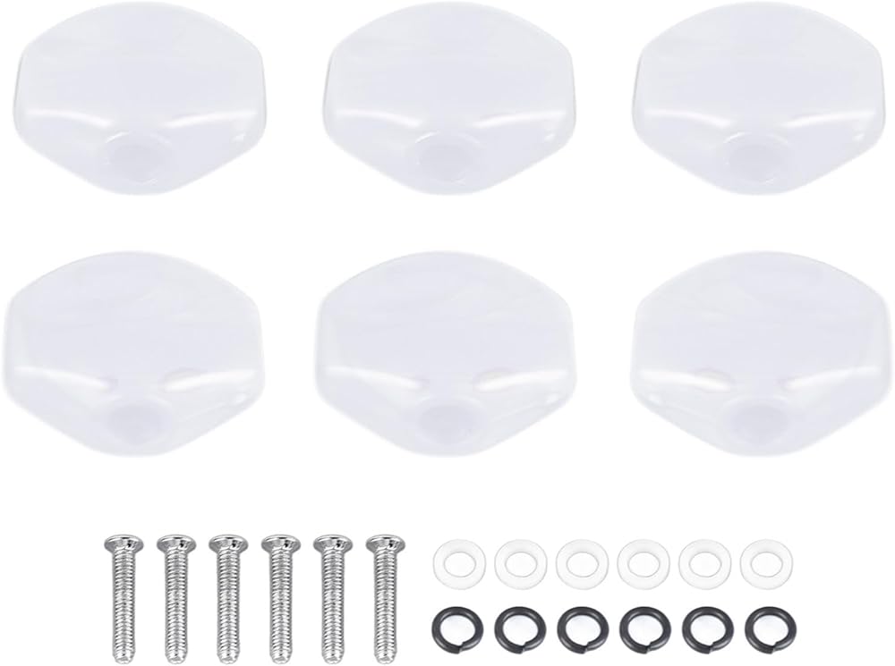 مجموعة كاملة مكونة من 6 قطع - تتضمن 6 أوتاد ضبط بيضاء مع جميع البراغي والغسالات الضرورية. لاستبدال الموالفات البالية أو التالفة في معظم القيثارات القياسية.