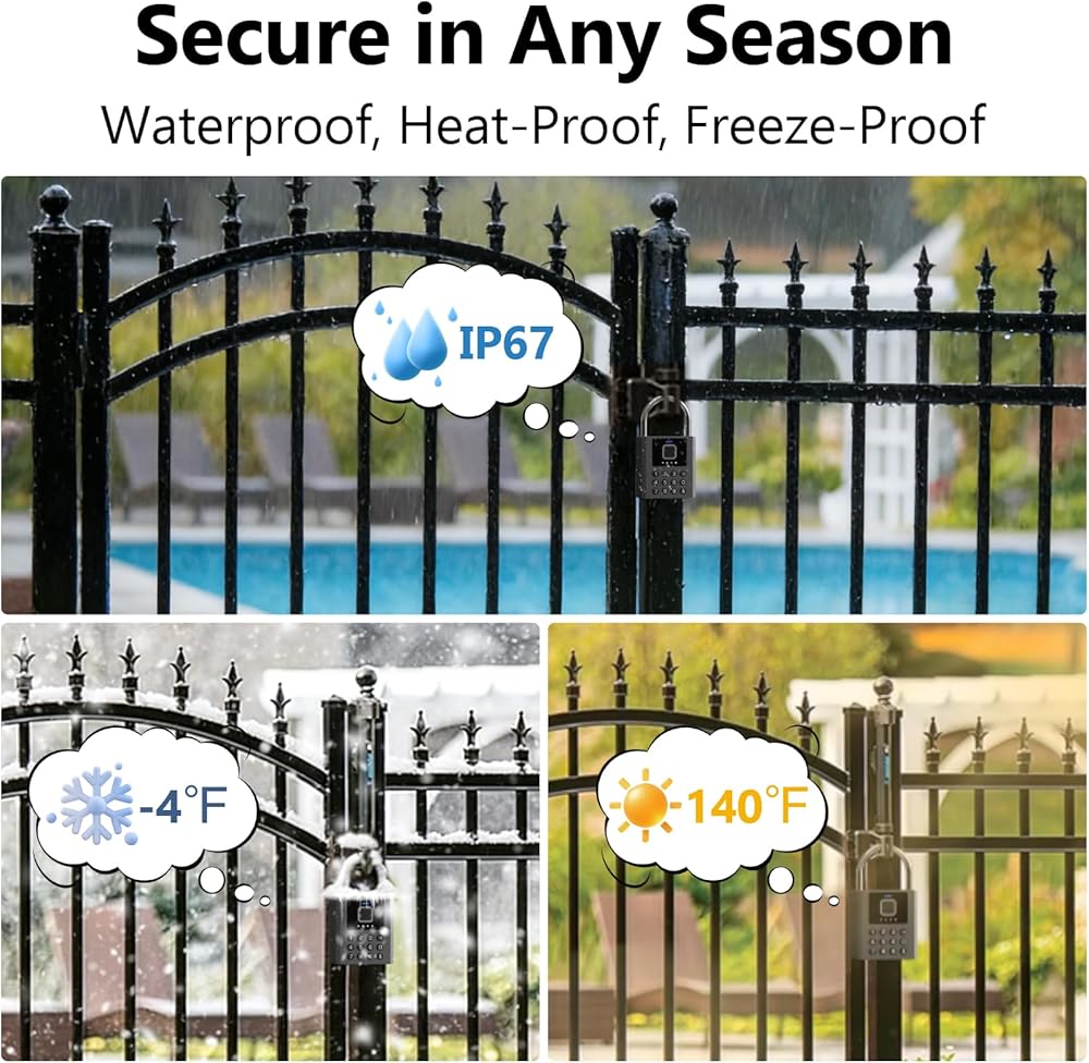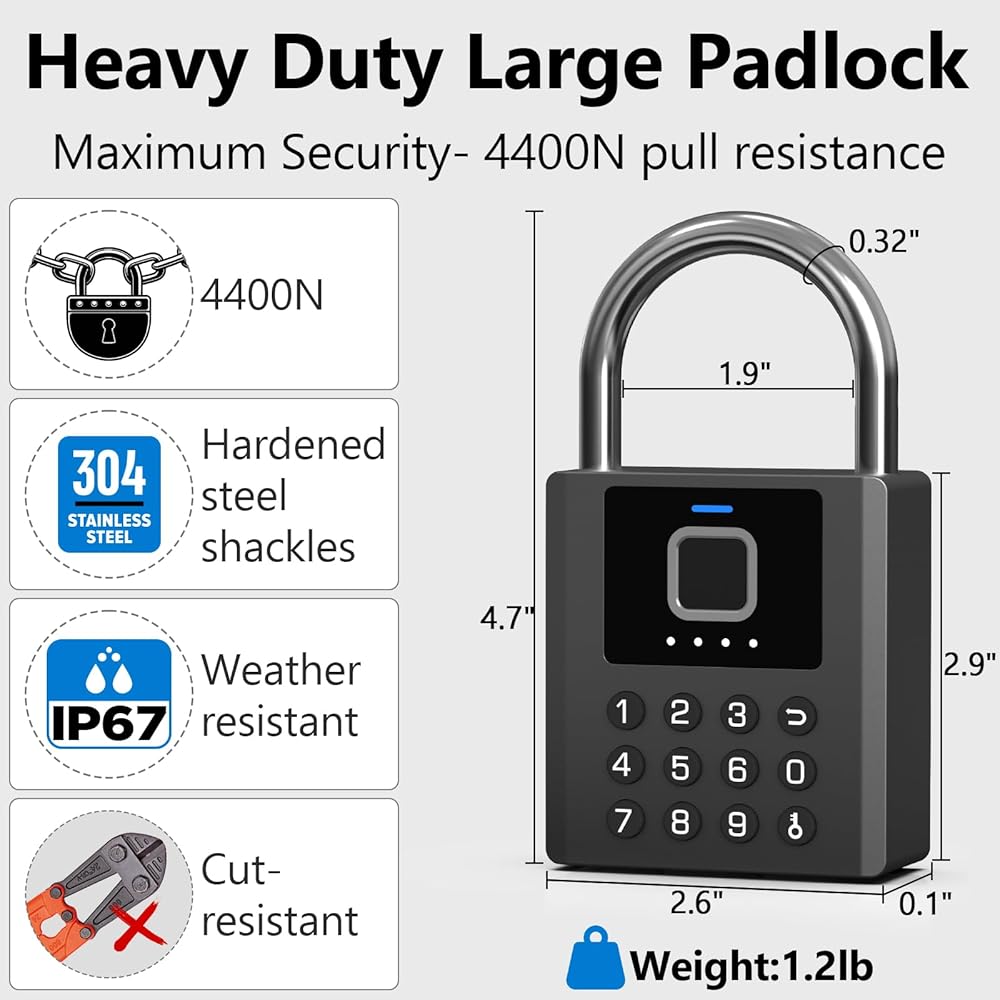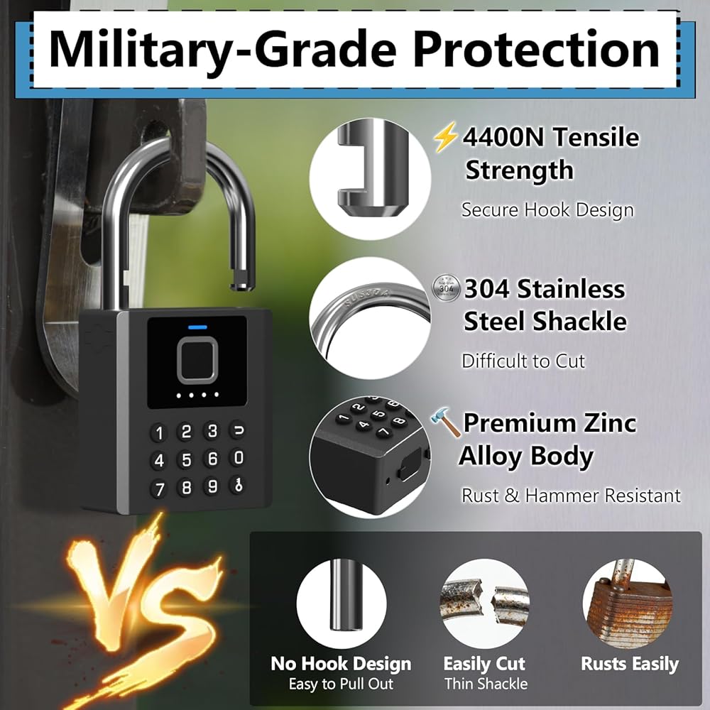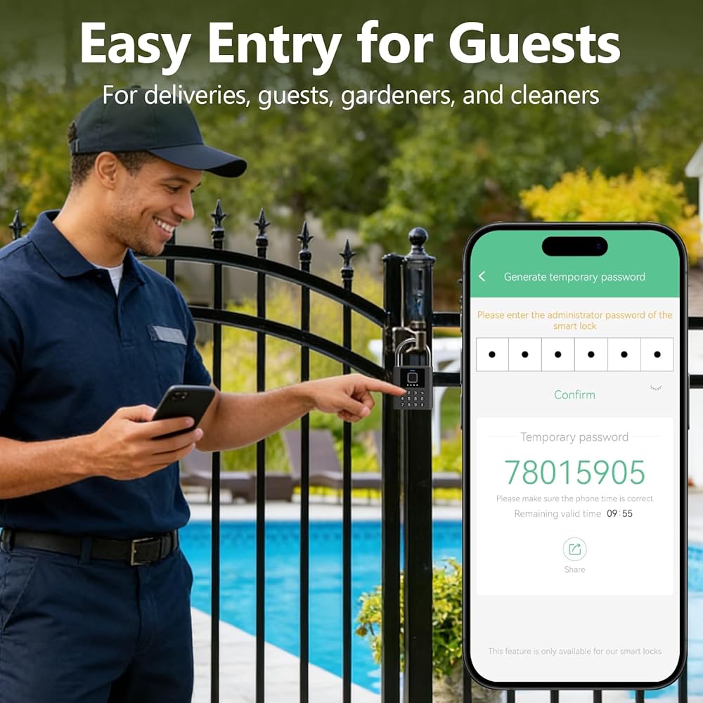 🔐إدارة التطبيقات الذكية والترخيص عن بعد: اتصل بالتطبيق عبر البلوتوث للتحكم الكامل. مراقبة سجلات إلغاء القفل (تتبع من ومتى)، وإدارة بصمات الأصابع، وإنشاء رموز مرور مؤقتة عن بعد للضيوف أو عمليات التسليم. يعد القفل مثاليًا للبوابات أو وحدة التخزين أو الوصول المشترك - آمن ومريح دون مشاركة المفاتيح المادية على الإطلاق.
