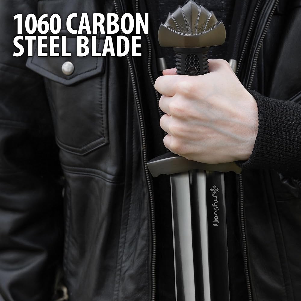 Forged for Power: Crafted with a 4mm thick 1060 carbon steel blade, this 38 1/2" Viking-style sword is built for strength and precision.