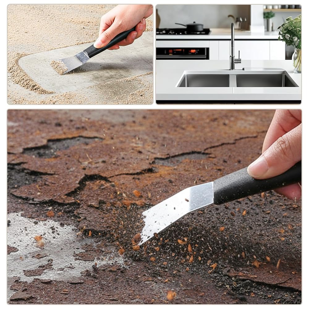 Package Contents: This 4-piece metal scraper tool includes both straight and angled designs, providing comprehensive solutions for different needs. The straight-edged scraper ensures clean removal of material from flat surfaces, while the angled scraper excels at prying edges.