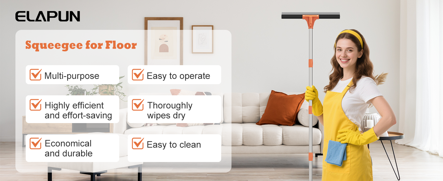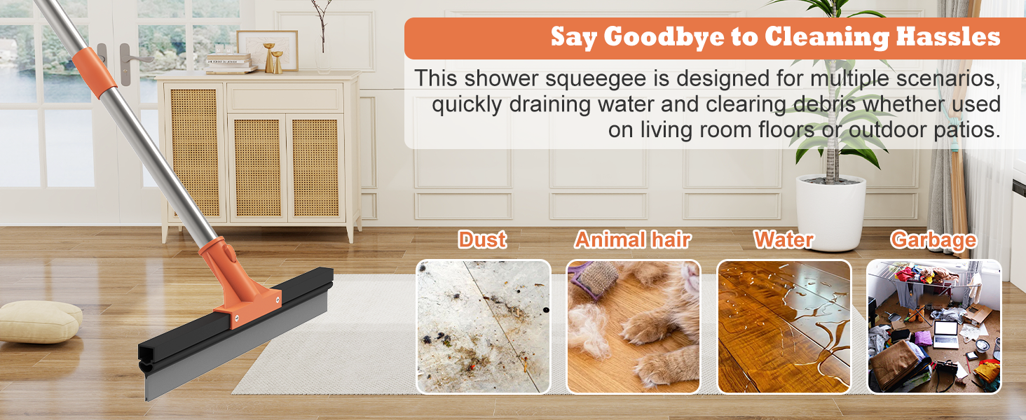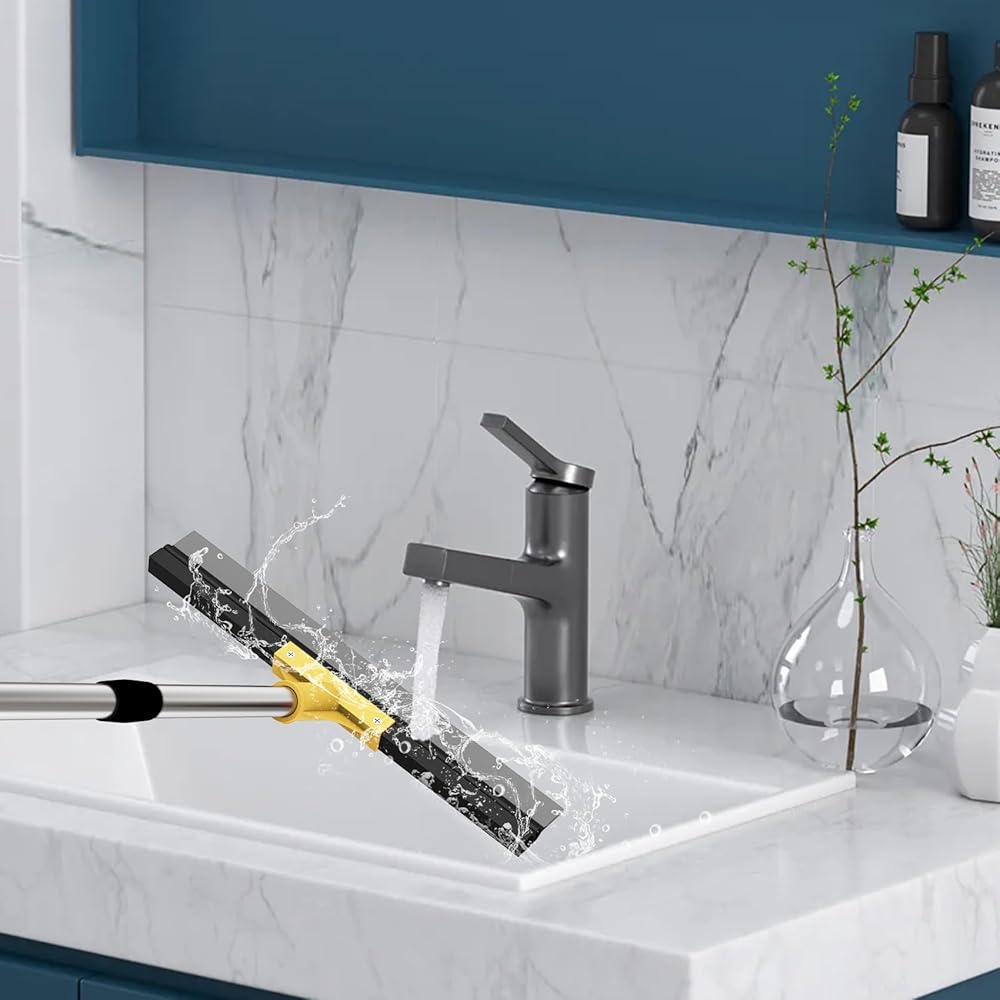 【تصميم مريح للتنظيف بدون مجهود】: قل وداعًا للوضع المضني للمكانس التقليدية. يتميز المقبض الطويل والممسحة المطاطية بزاوية محسنة تعانق الأرض بشكل طبيعي، مما يجعل عملية إزالة الماء سهلة. المقبض معزز بمقبض إسفنجي مريح غير قابل للانزلاق يقلل من التعب بشكل فعال حتى أثناء الاستخدام الطويل، مما يضمن قبضة ثابتة ومضاعفة كفاءة التنظيف.
