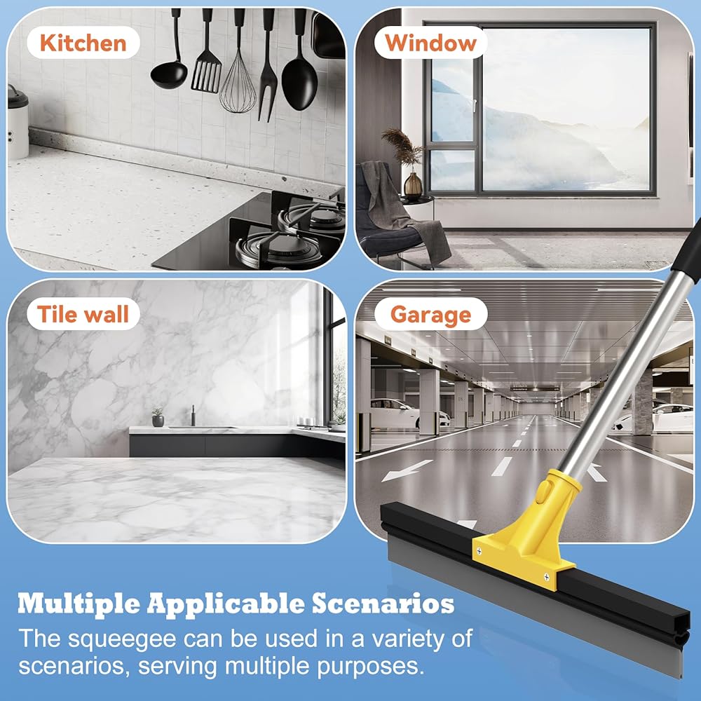 【ممسحة أرضية شديدة التحمل】: ممسحة الأرضية هذه هي أداة التنظيف المثالية. تتميز بشفرة مطاطية مقاومة للاهتراء مقترنة بمقبض عالي القوة من الفولاذ المقاوم للصدأ، فهي توفر متانة طويلة الأمد وأداء يفوق بكثير الممسحات البلاستيكية أو المعدنية العادية.