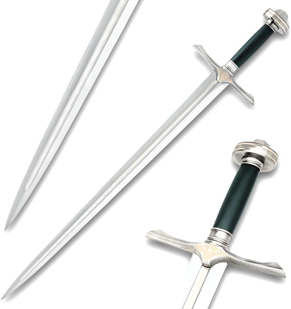 الحجم والتفاصيل مطابقة للفيلم: تتميز هذه النسخة المتماثلة المفصلة بشفرة من الفولاذ المقاوم للصدأ مقاس 33 بوصة مع مقبض معدني صلب وواقي يدوي بلمسة نهائية من الفولاذ العتيق، ومقبض ملفوف من الجلد الأصلي.