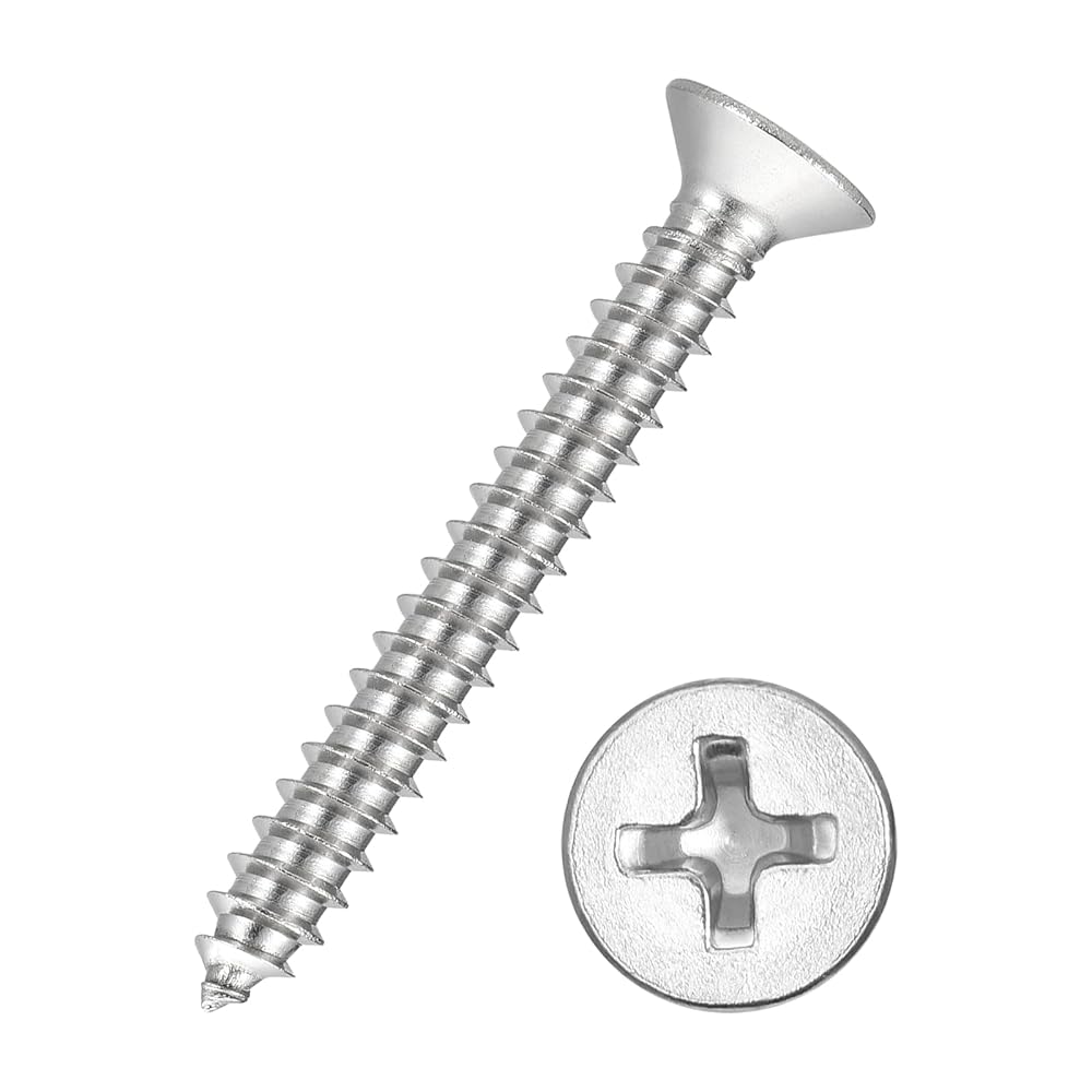 25 قطعة من مسامير الخشب ذات الرأس المسطح من فيليبس - [#10x1] 316 من الفولاذ المقاوم للصدأ، مسامير ذاتية اللصق لتجميع الأثاث، زخرفة داخلية، بناء خارجي، فضي