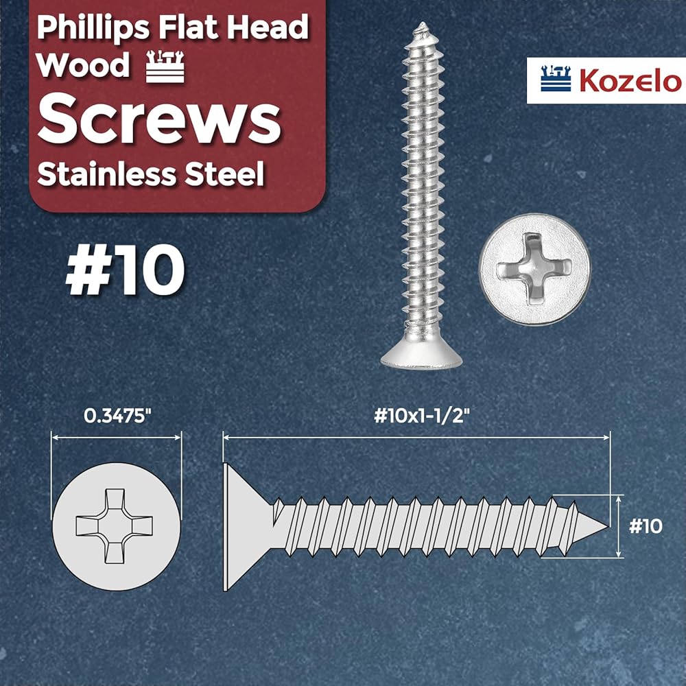 2- المادة - براغي خشبية ذاتية الحفر برأس مسطح من فيليبس - أداء عالي ومتانة. مصنوعة من الفولاذ المقاوم للصدأ 316 المقاوم للتآكل، فهي مقاومة للصدأ والرطوبة والظروف الجوية القاسية لمتانة طويلة الأمد.