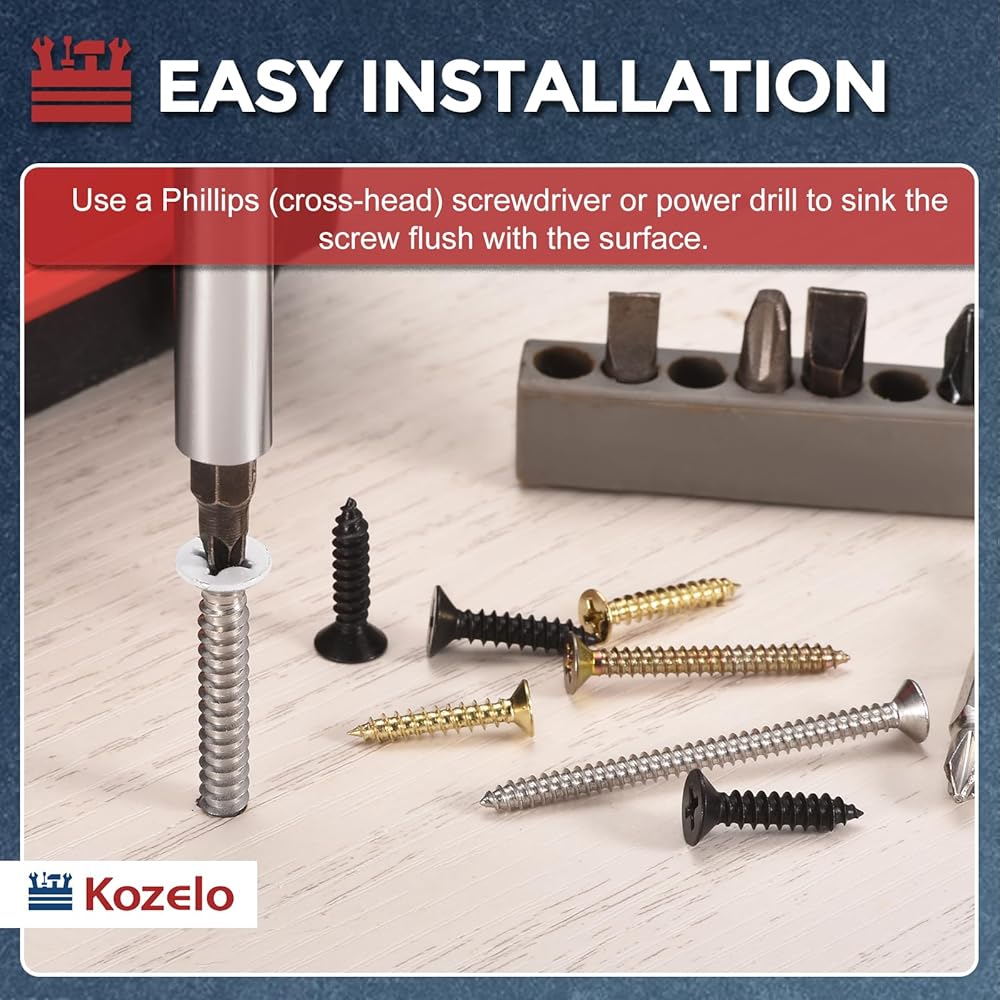 4- التطبيقات - البراغي الخشبية الغاطسة المتقاطعة عبارة عن مثبتات متعددة الاستخدامات مصممة للتركيب المتساطح في مشاريع الأعمال الخشبية. رؤوسها المدببة توضع بشكل مسطح تمامًا في الثقوب الغاطسة، مما يجعلها مناسبة لتجميع الأثاث (الطاولات والكراسي والخزائن)، والديكور الداخلي (ألواح القاعدة، والقوالب)، والبناء الخارجي (الطوابق، والأسوار، والبرجولات).