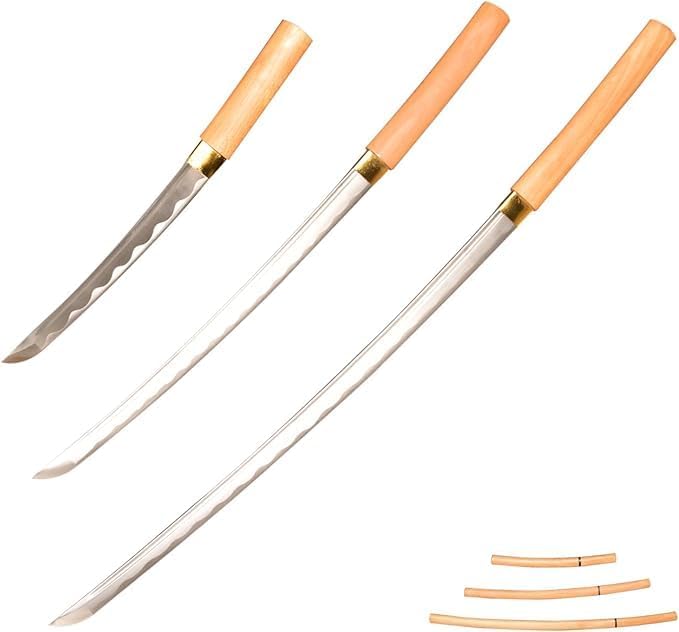 طقم ساموراي كاتانا مكون من ثلاث قطع مصنوع يدويًا من سوفاجين |1045 فولاذ عالي الكربون مع أخدود الدم|درجة جامعي الفنون القتالية