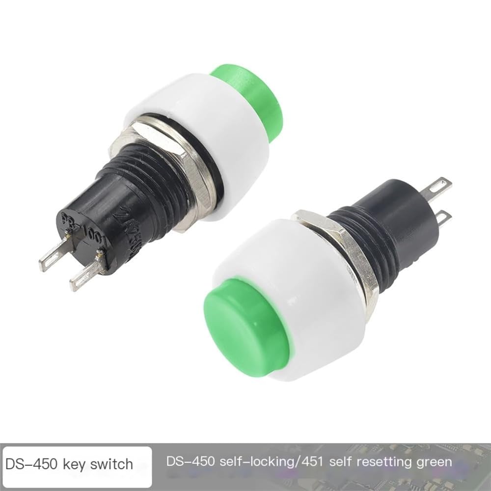 6 قطع مفتاح زر الضغط، DS-450 إعادة ضبط زر صغير مستدير ذاتي القفل 250 فولت 2 أمبير دبوس نحاسي أحمر وأخضر 10 مم (أخضر)