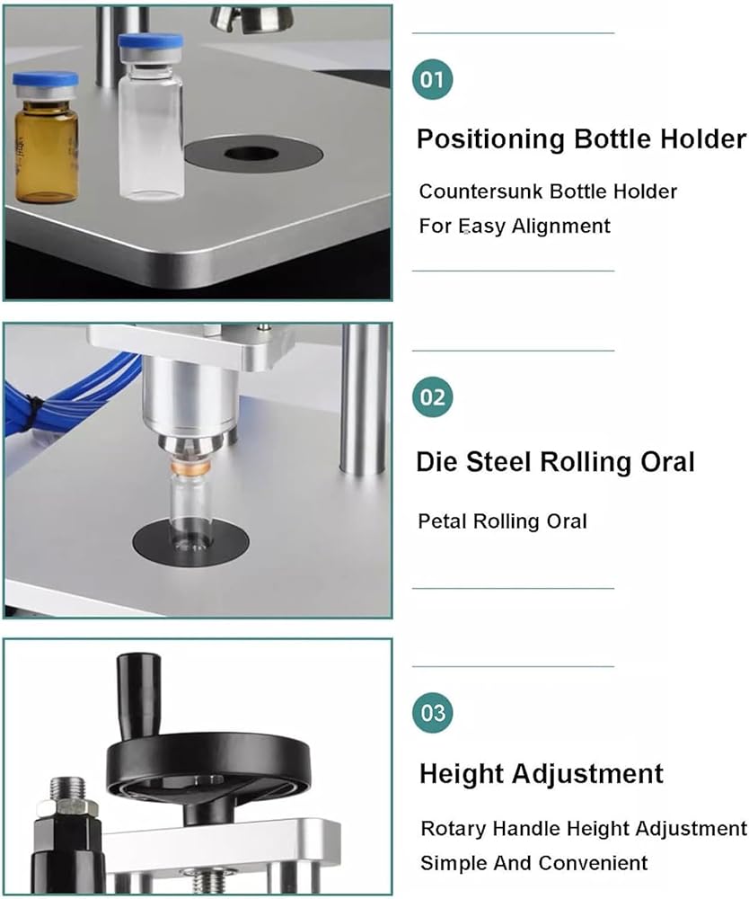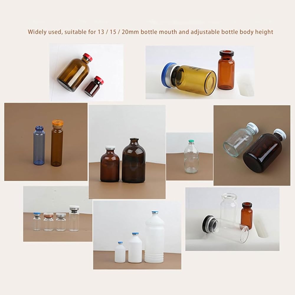 Wide application: Ideal for small-batch capping and sample preparation across various industries including food, packaging, chemical, educational labs, and home use, accommodating different bottle types and liquids.