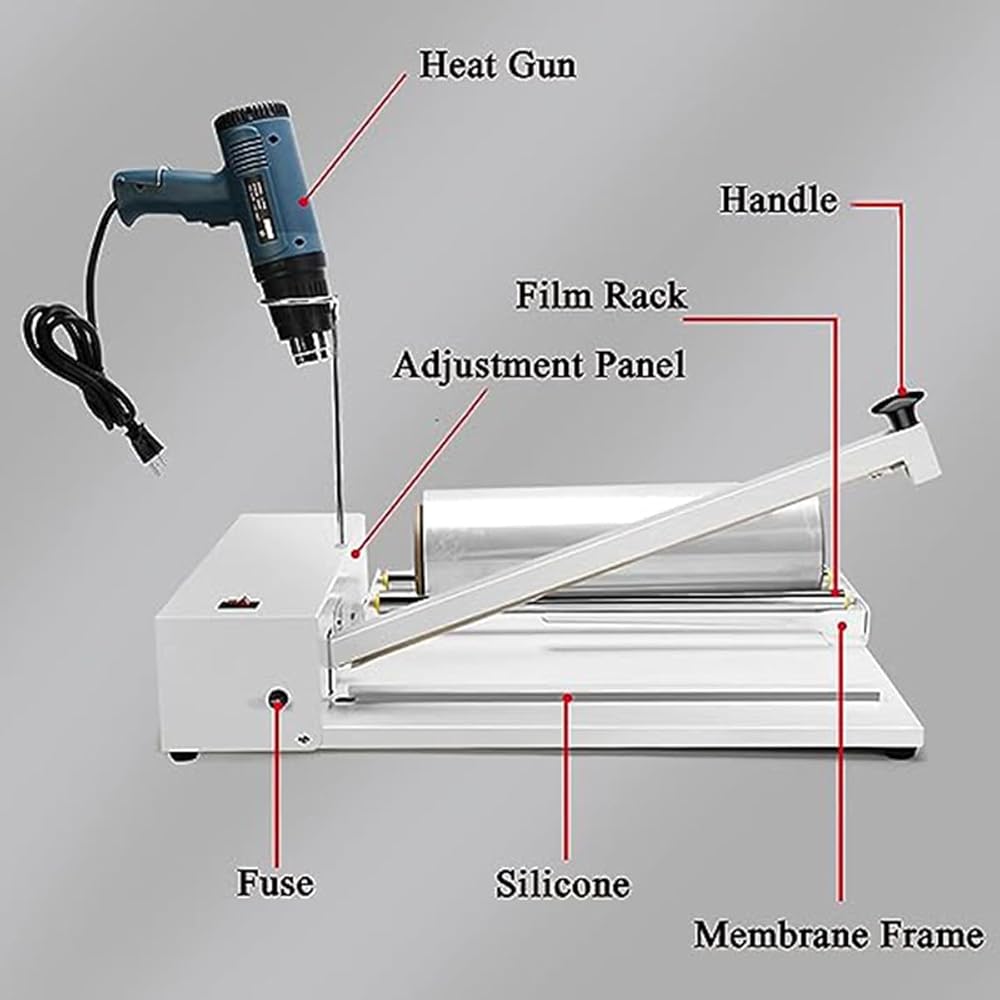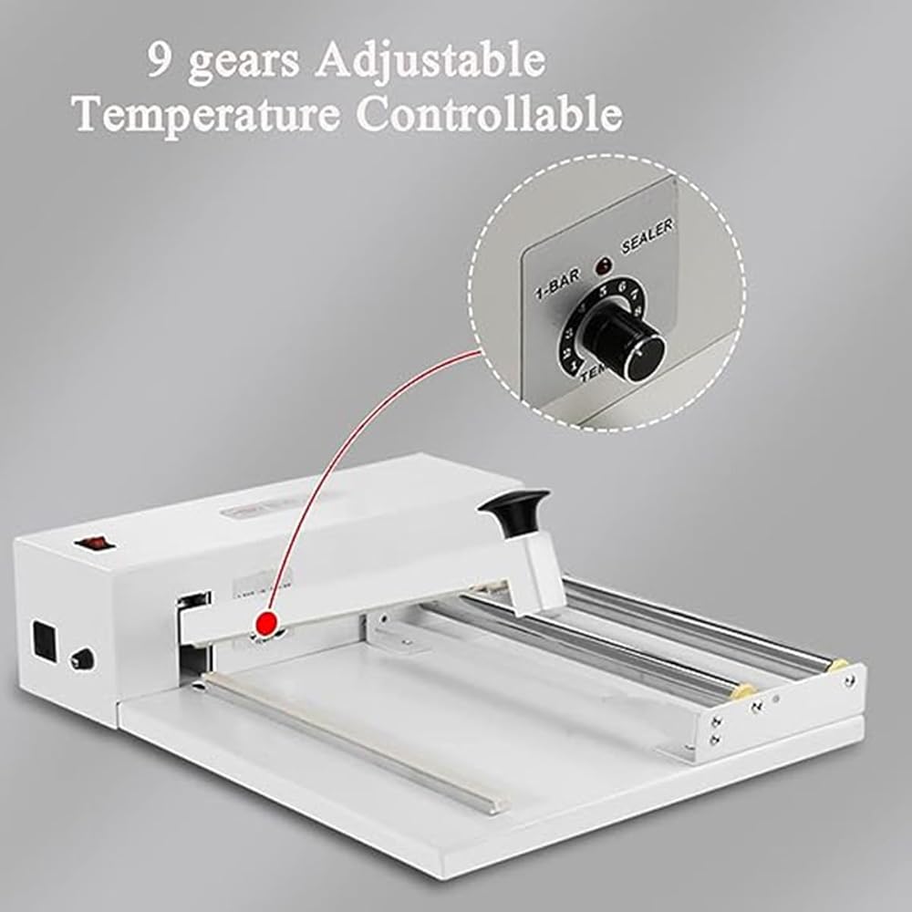 Adjustable Temperature Settings: This sealing machine features nine adjustable temperature levels to accommodate films of varying thicknesses. The included 1500W hot air gun, with two adjustable settings, ensures flexibility and precision in sealing .