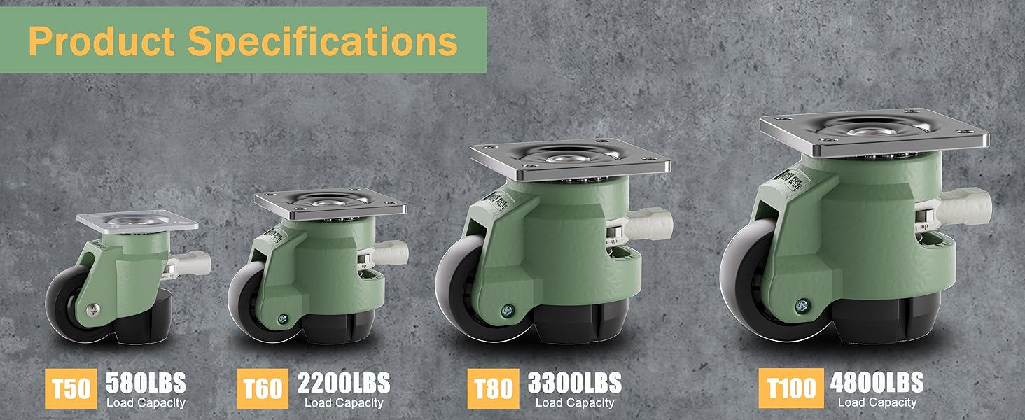 【تستخدم على نطاق واسع】عجلات قابلة للتعديل الارتفاع تناسب الأشياء التي تحتاج إلى تعديل ارتفاعها ليتناسب مع الوظيفة، مثل معدات المختبرات، ومنضدة العمل، والمعدات الصناعية، والآلات الطبية، ومعدات الاتصالات، والأثاث الثقيل، والخزانة وما إلى ذلك. مقاوم للصدأ، مناسب للاستخدام الداخلي والخارجي.