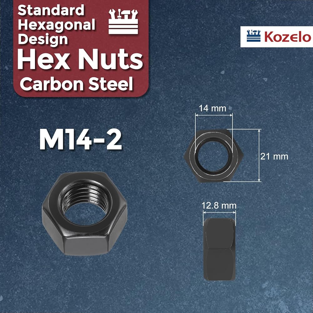 1- محتويات العبوة - الكمية: 4 قطع؛ حجم الخيط: M14؛ درجة الخيط/TPI: 2؛ الارتفاع: 12.8 ملم؛ عبر الشقق: 21 ملم؛ اتجاه الموضوع: اليد اليمنى. معيار الخيط: خيط خشن؛ تشطيب السطح: أكسيد أسود.