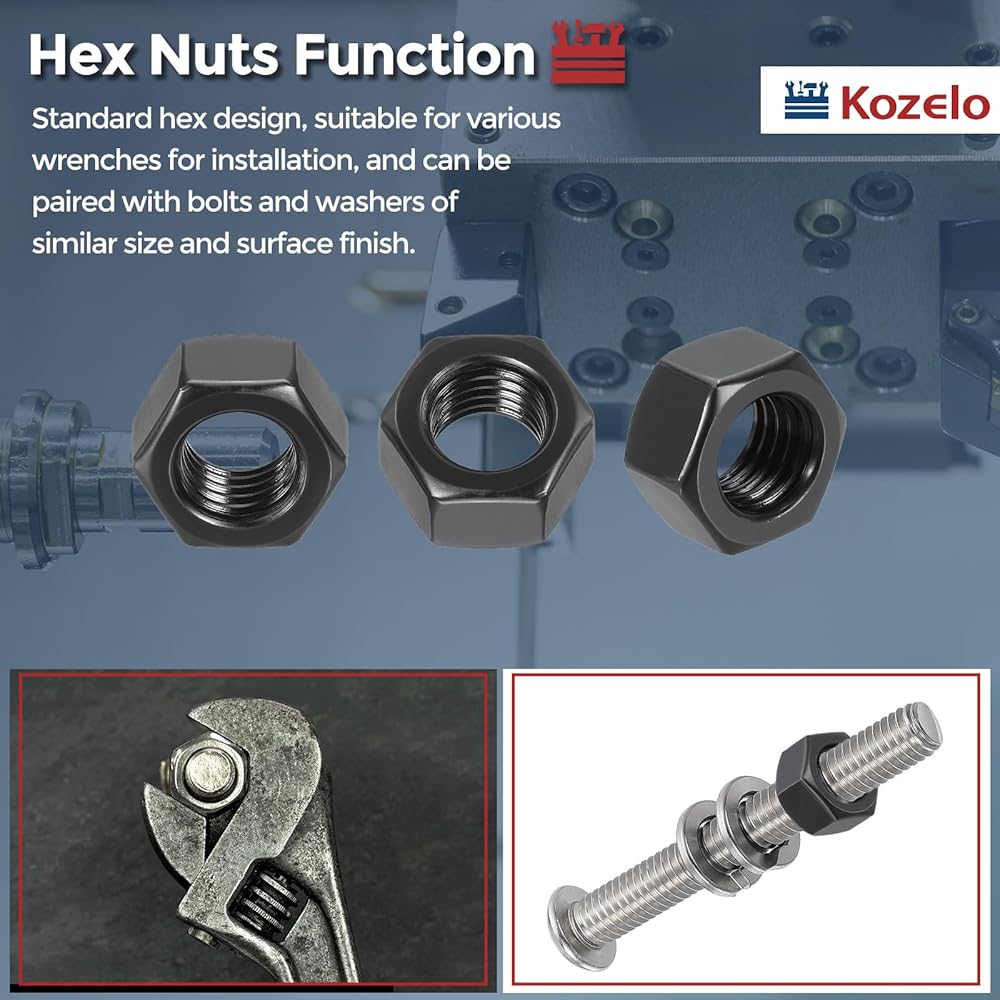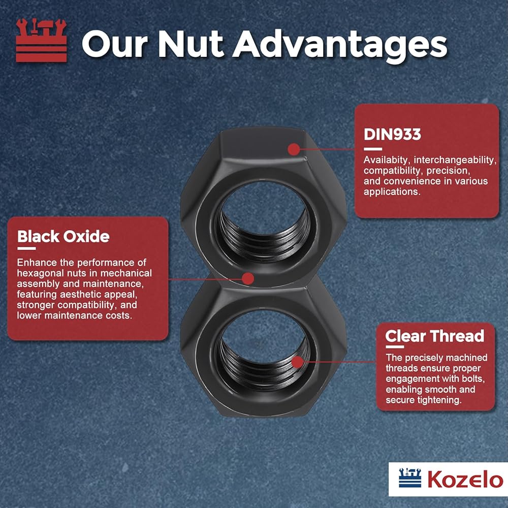 2- المادة - يتم تصنيع الصواميل السداسية الخاصة بنا من الفولاذ الكربوني، مما يوفر قوة عالية ومقاومة للتآكل من الدرجة 8. وتتميز بطبقة من الأكسيد الأسود، مما يوفر مقاومة معززة للأكسدة والتآكل. الخطوط الحلزونية واضحة والسطح أملس، لذلك لا داعي للقلق بشأن خدش يديك.