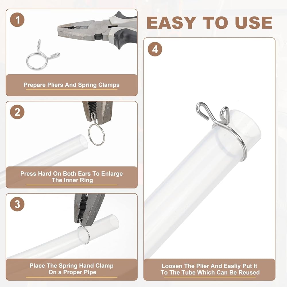 • Instruction: Easy to use, just use pliers to open the clamp and put it into the pipe where it needs to be installed, which can be reused. Suitable for humid environments
