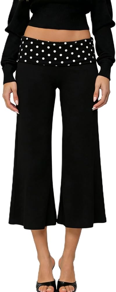 Design: Features a fold over waistband with low rise and elastic waist for adjustable fit. These wide leg capris for women showcase a loose fit and cropped length, making them ideal as fold over gaucho pants for women