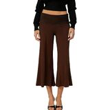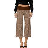 Women's Fold Over Waist Capri Fashionable Casual Solid Color Low Rise Wide Leg Crop Pants
