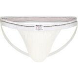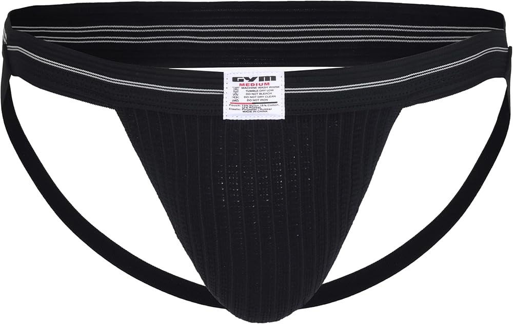 The GYM Old School Swim/Run Jockstrap with 1" Waistband is a classic 1" athletic supporter. The jockstrap is available in 2 colors: White, Black. Made with a 1" waistband and 1/2 inch leg straps. Composition: Pouch is 73% Nylon, 12% Rubber, 15% Cotton Waistband/Legstraps: Polyester and Rubber. PLEASE NOTE THE FOLLOWING REGARDING SIZING: Jockstraps fit tight. If you do not want a tight fit size up based on these dimensions. Before stretching the circumference of each waistband is approximately as follows: SMALL: 24", Medium: 27", Large: 30", XL: 33", 2XL: 36", 3XL: 38", 4XL: 40".