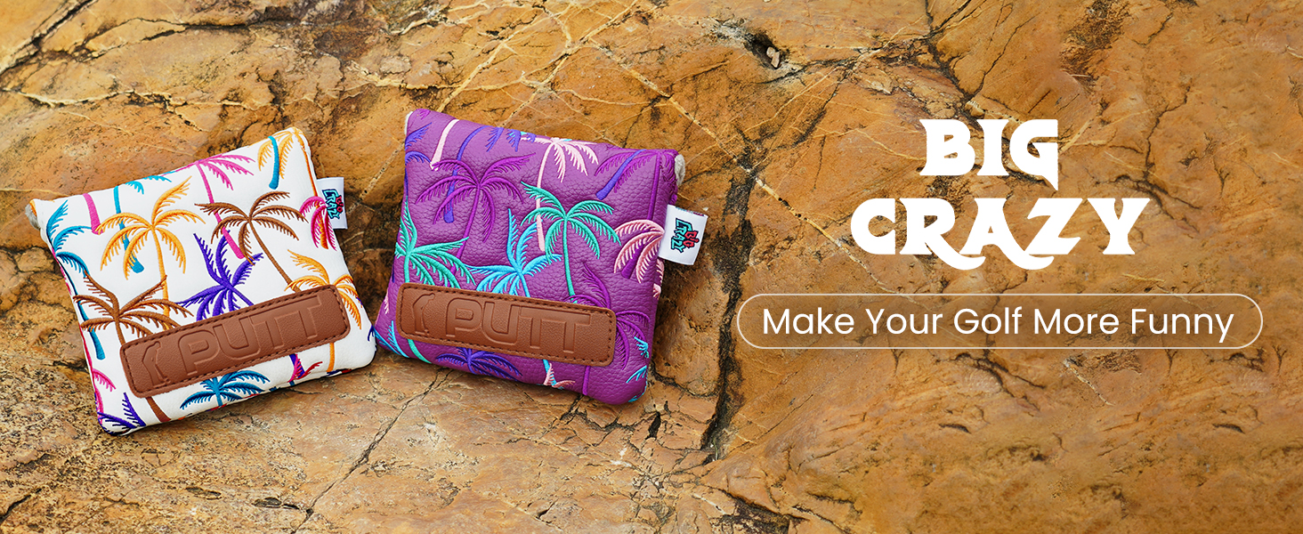 غطاء مضرب كبير مجنون مع إغلاق مغناطيسي قوي - غطاء مضرب مطرقة مربع - جلد بولي يوريثان مقاوم للماء - أغطية رأس الجولف - تصميم مضحك لشجرة جوز الهند in Kuwait