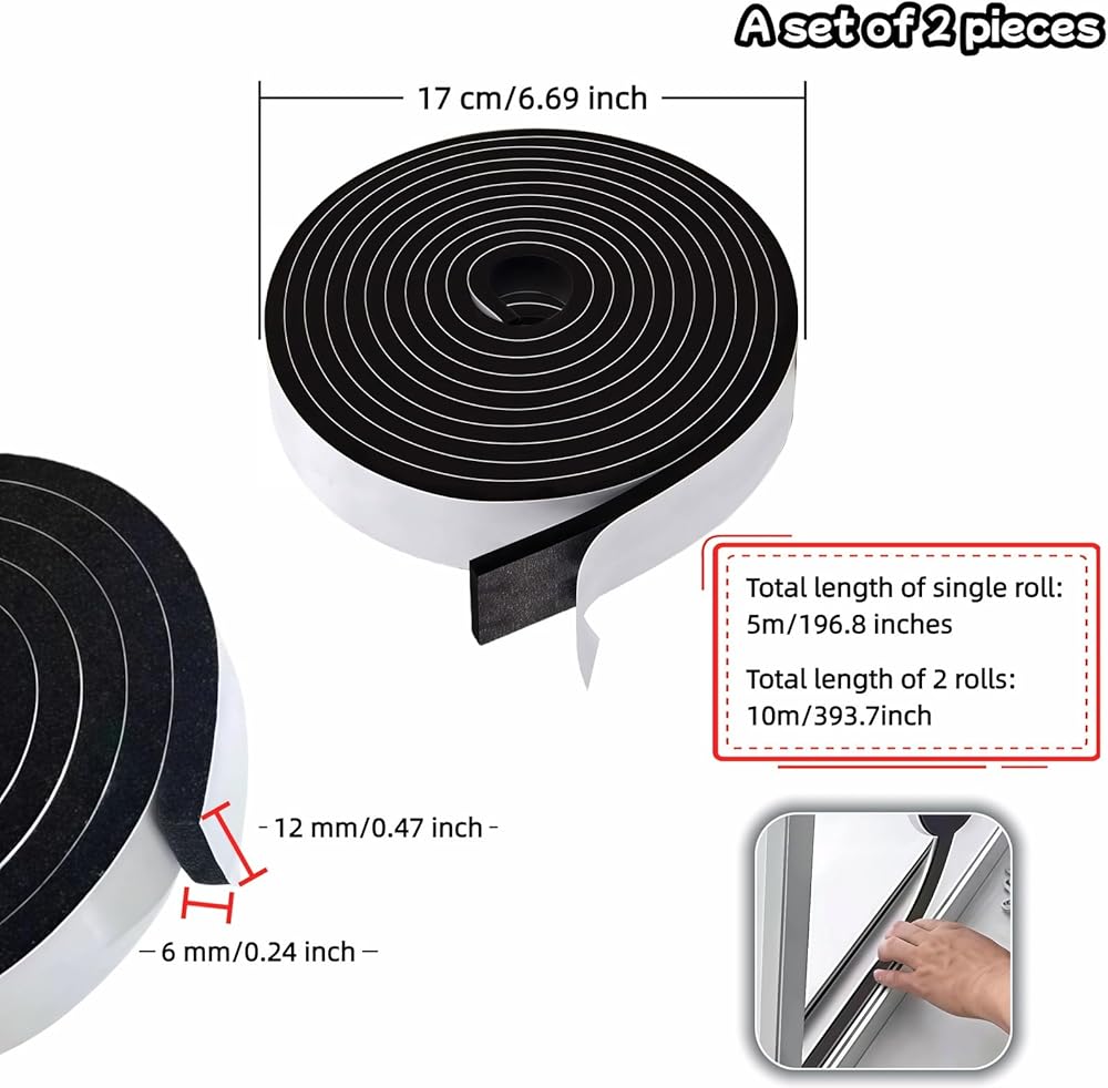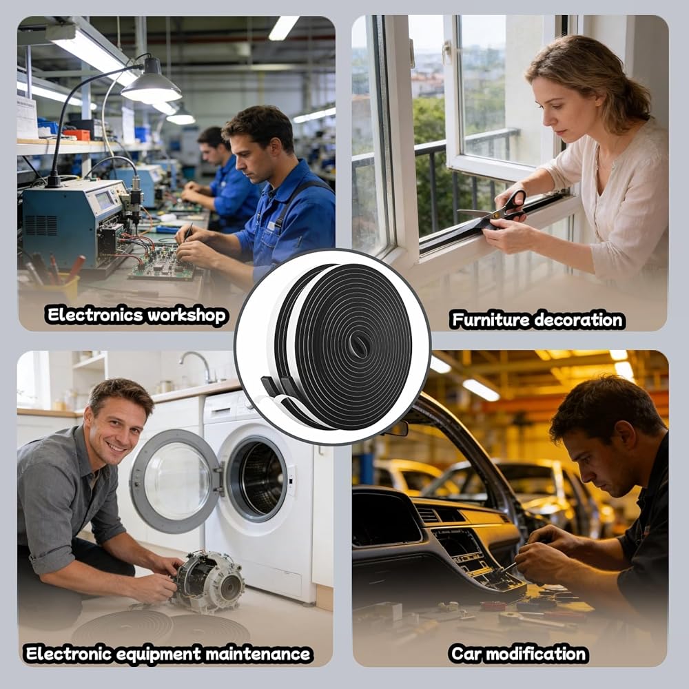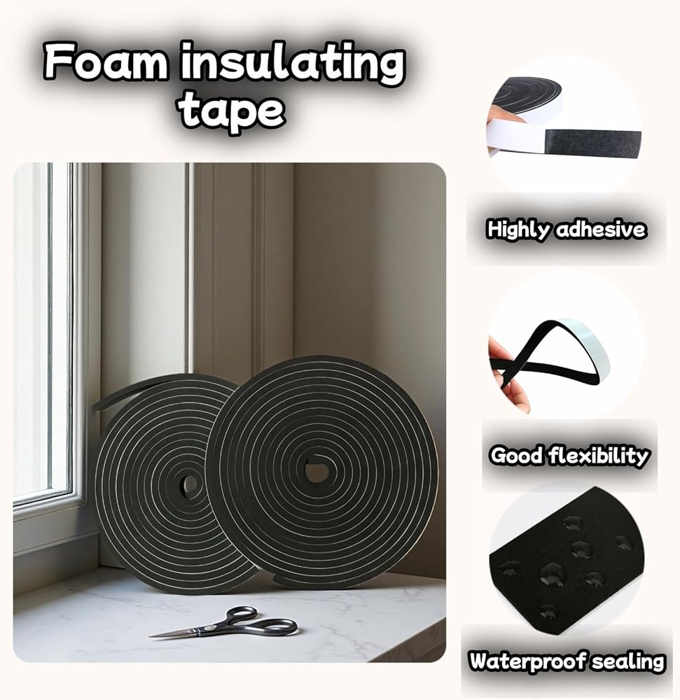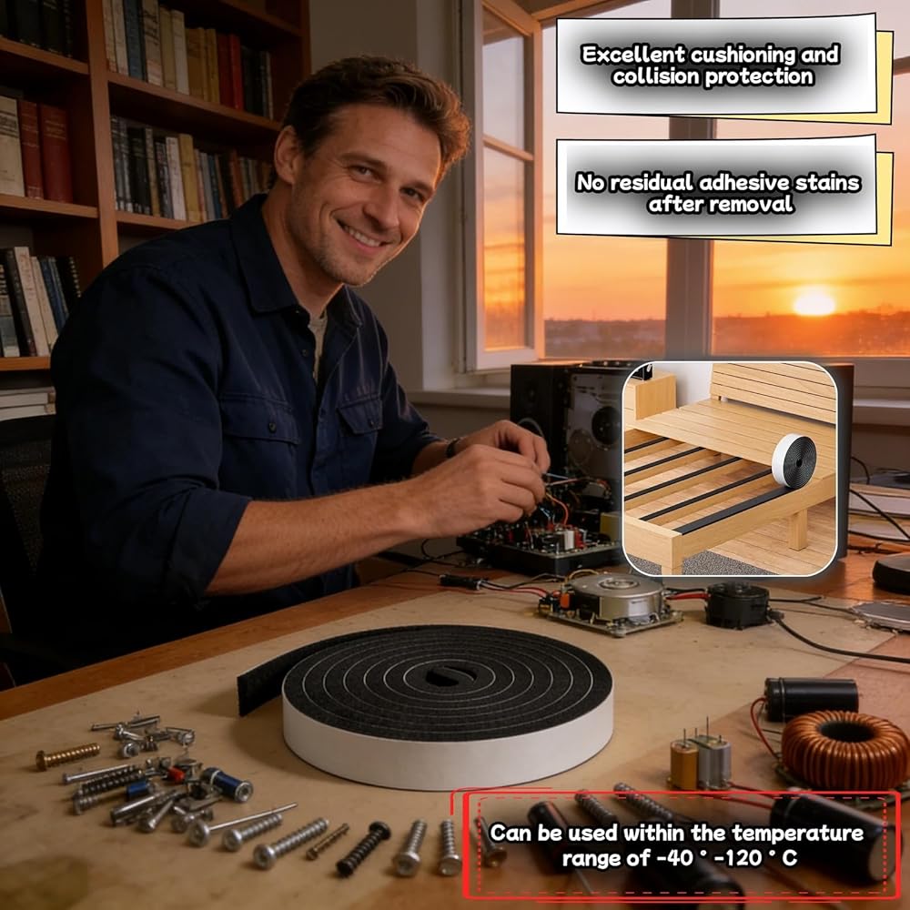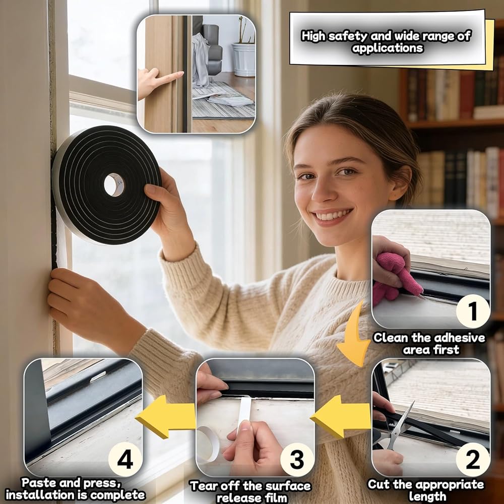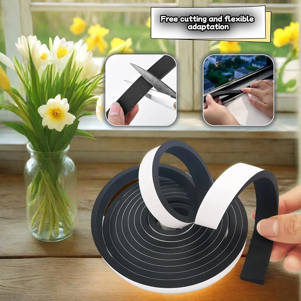 This high-elasticity foam tape is the ultimate solution for sealing gaps, reducing noise, and protecting surfaces throughout your home. Engineered with industrial-grade adhesive and high-density closed-cell neoprene, this weather stripping creates an instant, lasting bond that effectively blocks drafts, dust, and unwanted sound around doors, windows, and AC units. The tape performs reliably in extreme conditions, withstanding temperatures from -40°F to 300°F without cracking, shrinking, or degrading—making it perfect for both interior and exterior applications including garage doors, RVs, and outdoor equipment. Its remarkable flexibility allows it to conform to curved windows, uneven gaps, and irregular surfaces, while remaining easy to cut with scissors for custom sizing. Beyond weather sealing, this versatile foam tape serves as excellent cushioning for furniture legs, table edges, and tool storage, preventing scratches on floors and walls while reducing vibration and impact. Installation is effortless with the peel-and-stick design, and removal leaves no adhesive residue behind. Whether you're looking to improve energy efficiency, create a quieter living space, or add protective padding to your belongings, this multi-use foam tape delivers professional results for DIY enthusiasts and homeowners alike.