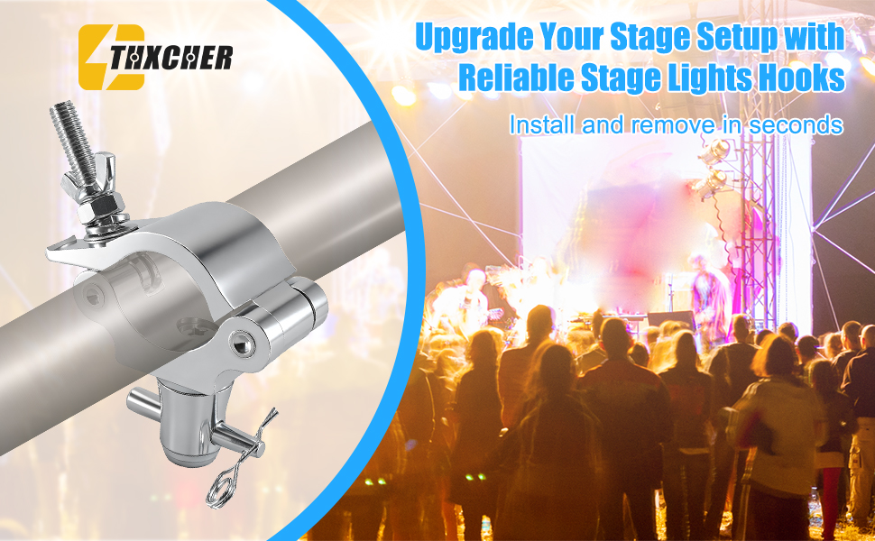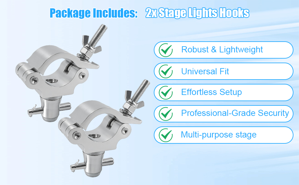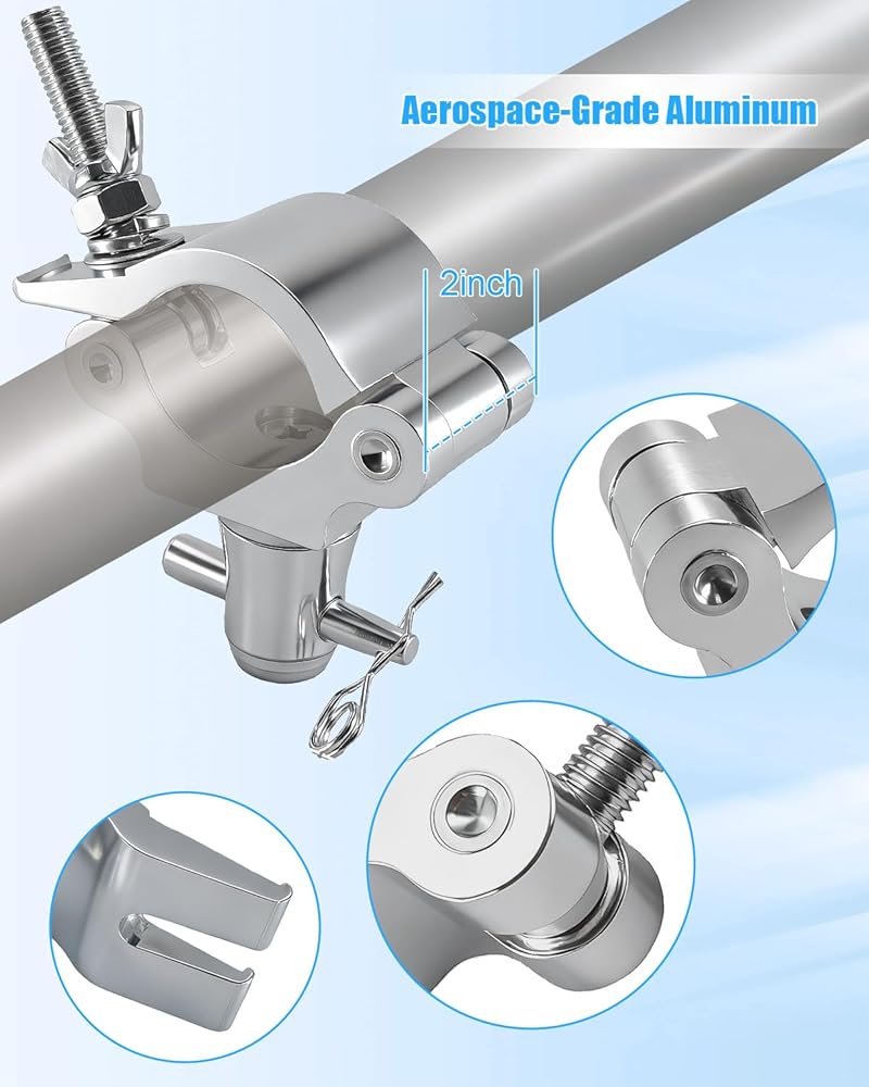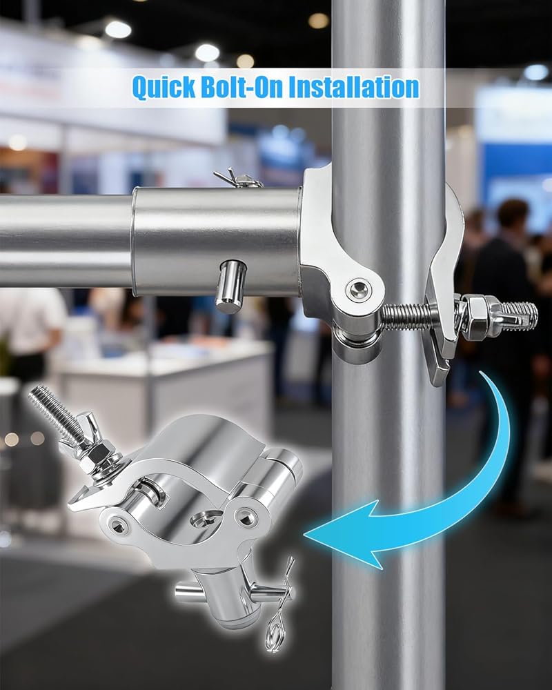 سعة التحمل: تمت ترقية حمولة Truss O-clamps إلى عرض 2 بوصة، وتدعم 660 رطلاً (300 كجم)، مما يوفر تثبيتًا آمنًا لأضواء المسرح ومكبرات الصوت ومعدات AV بموثوقية كاملة