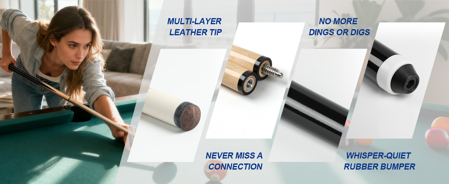 Enhanced Stability with High-Density Core: Selectively uses the hardest segments of rock maple in the forearm and shaft of the pool sticks to minimize deflection. Reinforced cue sticks joint and ferrule prevent tip separation or splintering